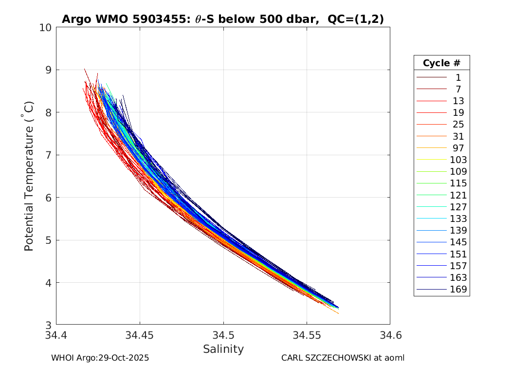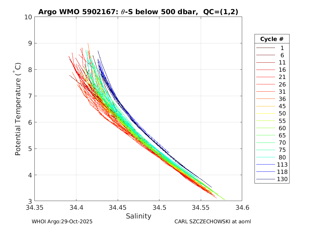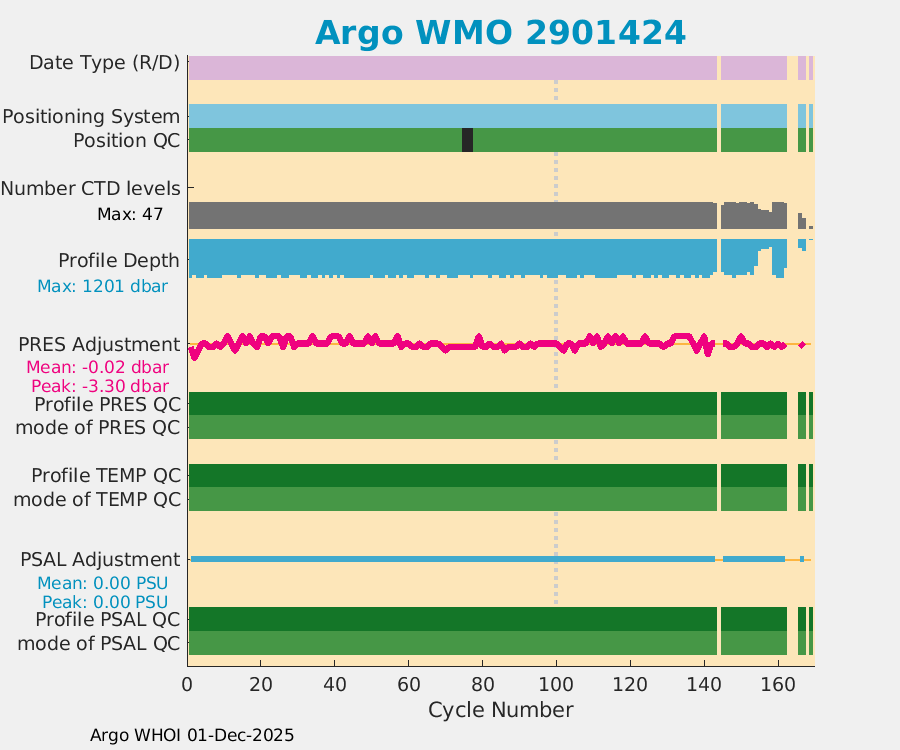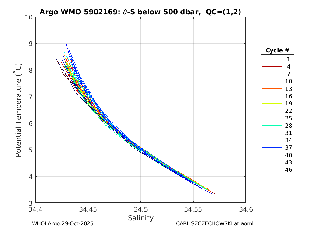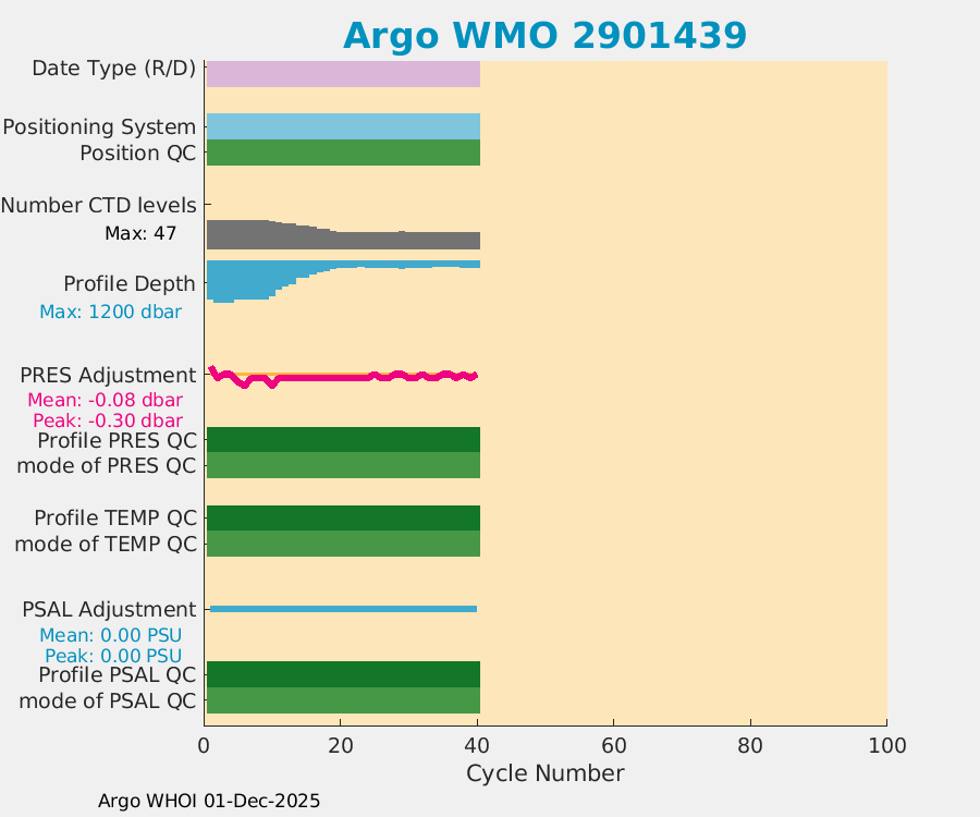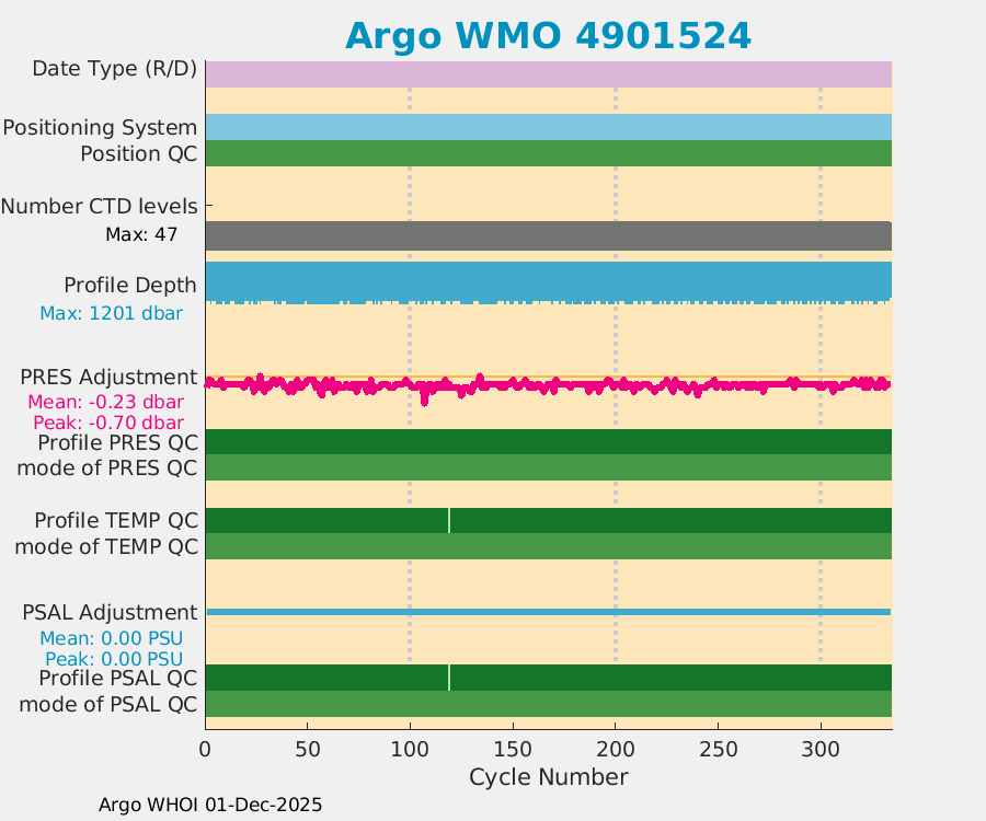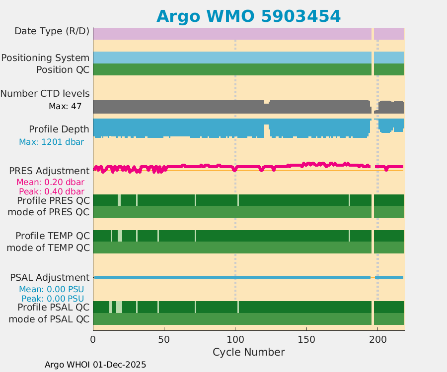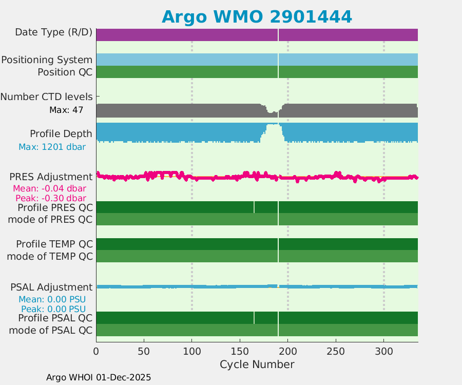 | WMO: #2901444 DAC: aoml PI: CARL SZCZECHOWSKI APEX: #5707 SBE41: #5554 Altimeter Comparison (IFREMER) EuroArgo Link | ![]() |