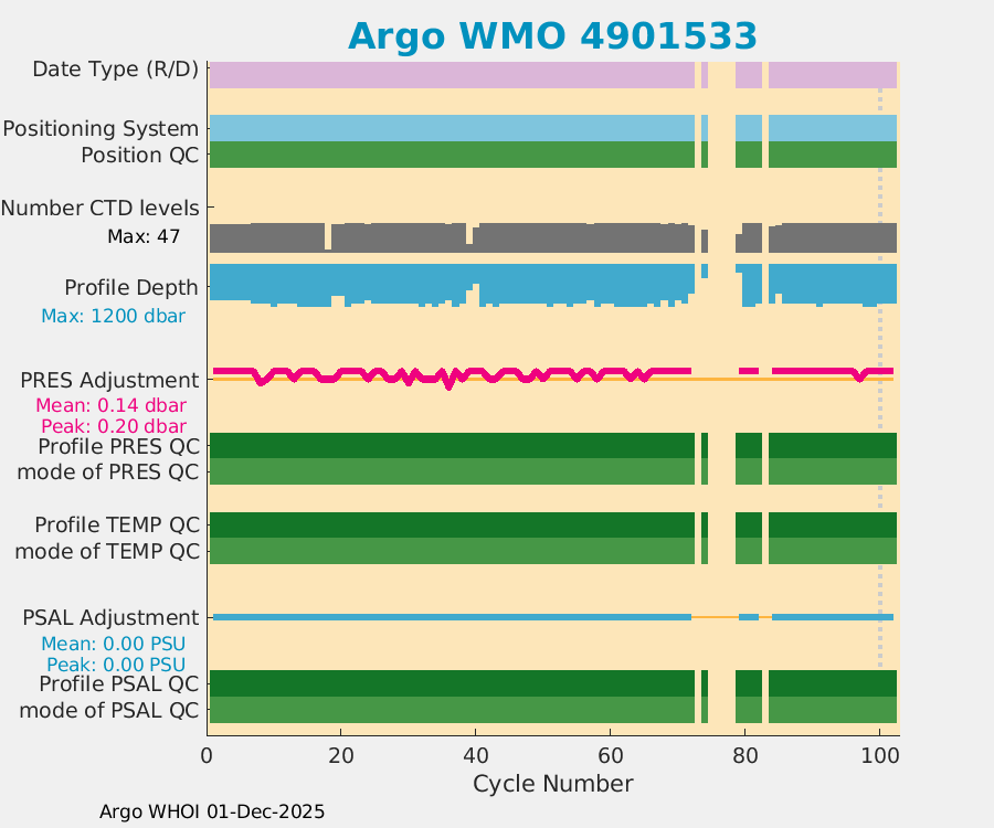 | WMO: #1901494 DAC: aoml PI: ARIEL TROISI SOLO: #979 SBE41CP: #2032 DRUCK_2900PSIA: #2774720 Altimeter Comparison (IFREMER) EuroArgo Link | ![]() |