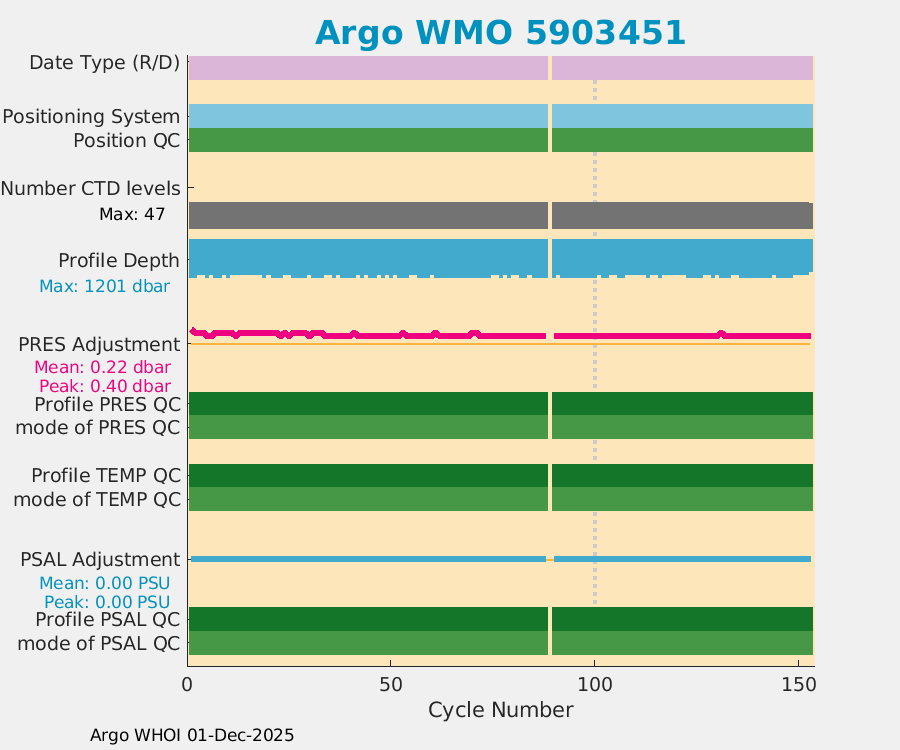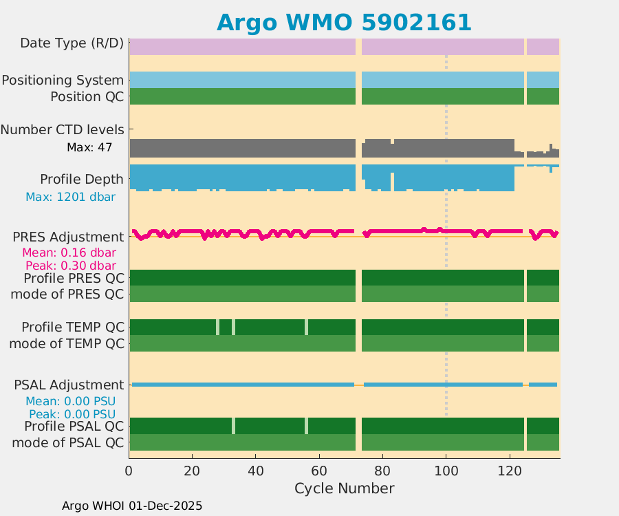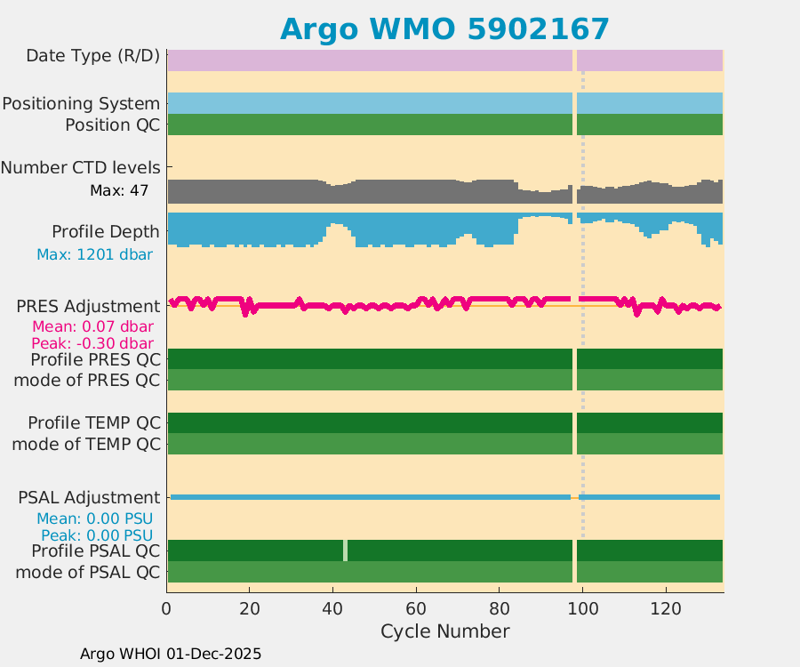 | WMO: #5904002 DAC: aoml PI: Stephen Riser APEX: #NaN SBE41CP: #3830 2900 PSIA: #3379545 Altimeter Comparison (IFREMER) EuroArgo Link | n/a | n/a | ![]() |
