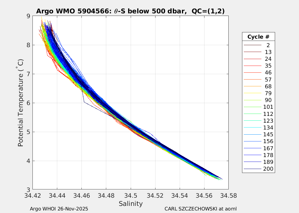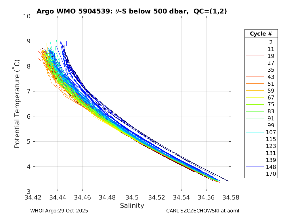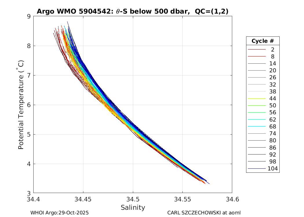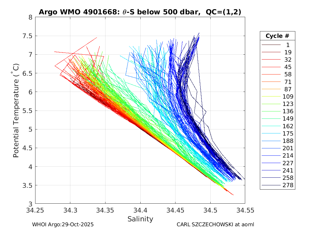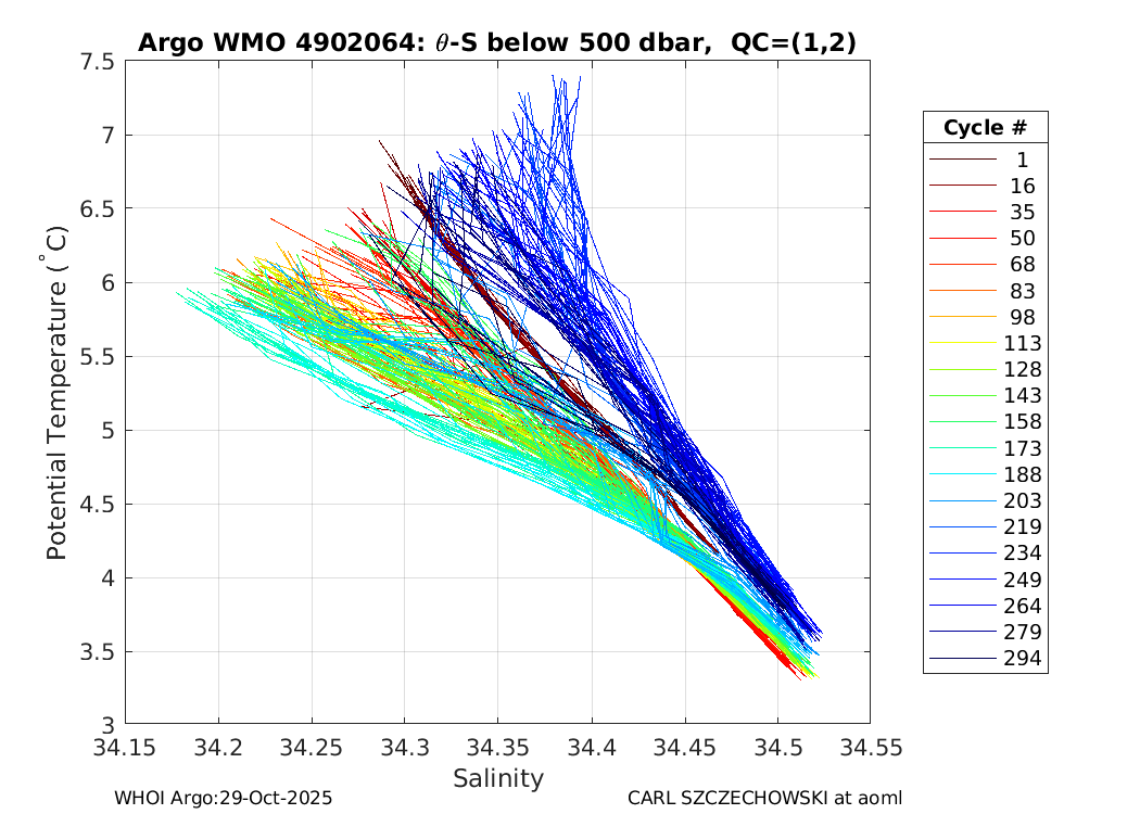 | WMO: #2901467 DAC: aoml PI: CARL SZCZECHOWSKI APEX: #6764 SBE41: #6005 Altimeter Comparison (IFREMER) EuroArgo Link | ![]() |