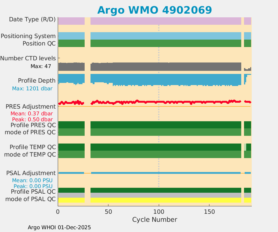 | WMO: #4902067 DAC: aoml PI: CARL SZCZECHOWSKI APEX: #6869 SBE41: #6357 Altimeter Comparison (IFREMER) EuroArgo Link | ![]() |