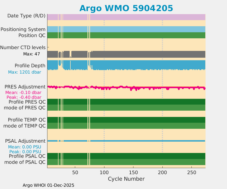 | WMO: #3901054 DAC: aoml PI: PRITHA TUTASI S2-A: #7113 SBE41CP: #4479 DRUCK_2900PSIA: #3496853 Altimeter Comparison (IFREMER) EuroArgo Link | ![]() |