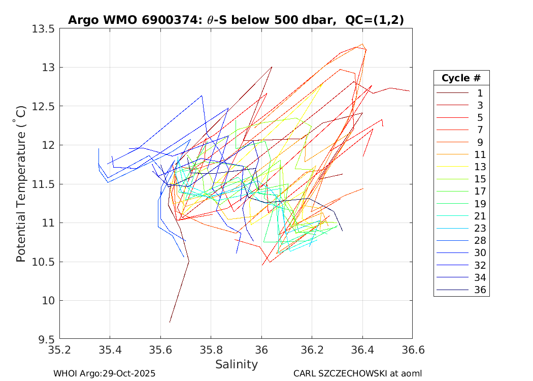 | WMO: #4901636 DAC: aoml PI: Jose Luis OCHOA DE LA TORRE SOLO_II: #8195 DRUCK_2900PSIA: #3827147 SBE41CP: #5320 Altimeter Comparison (IFREMER) EuroArgo Link | ![]() |