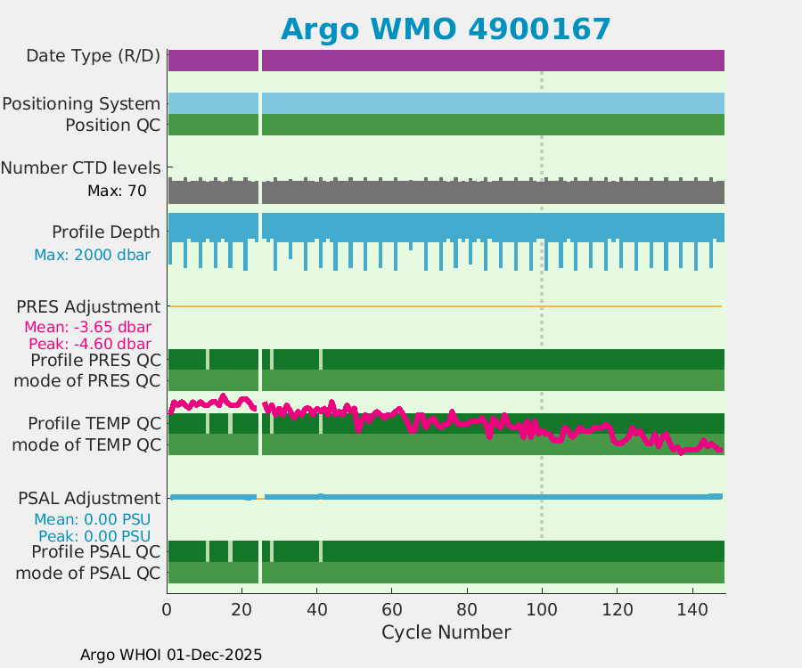 | WMO: #4900166 DAC: aoml PI: GREGORY C. JOHNSON APEX: #812 SBE41: #0548 AMETEK: #2657717541 Altimeter Comparison (IFREMER) EuroArgo Link | ![]() |