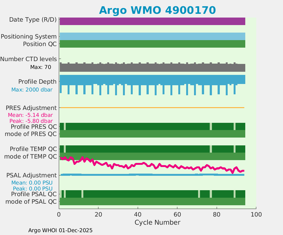 | WMO: #4900170 DAC: aoml PI: GREGORY C. JOHNSON APEX: #813 SBE41: #0570 AMETEK: #2657718084 Altimeter Comparison (IFREMER) EuroArgo Link | ![]() |