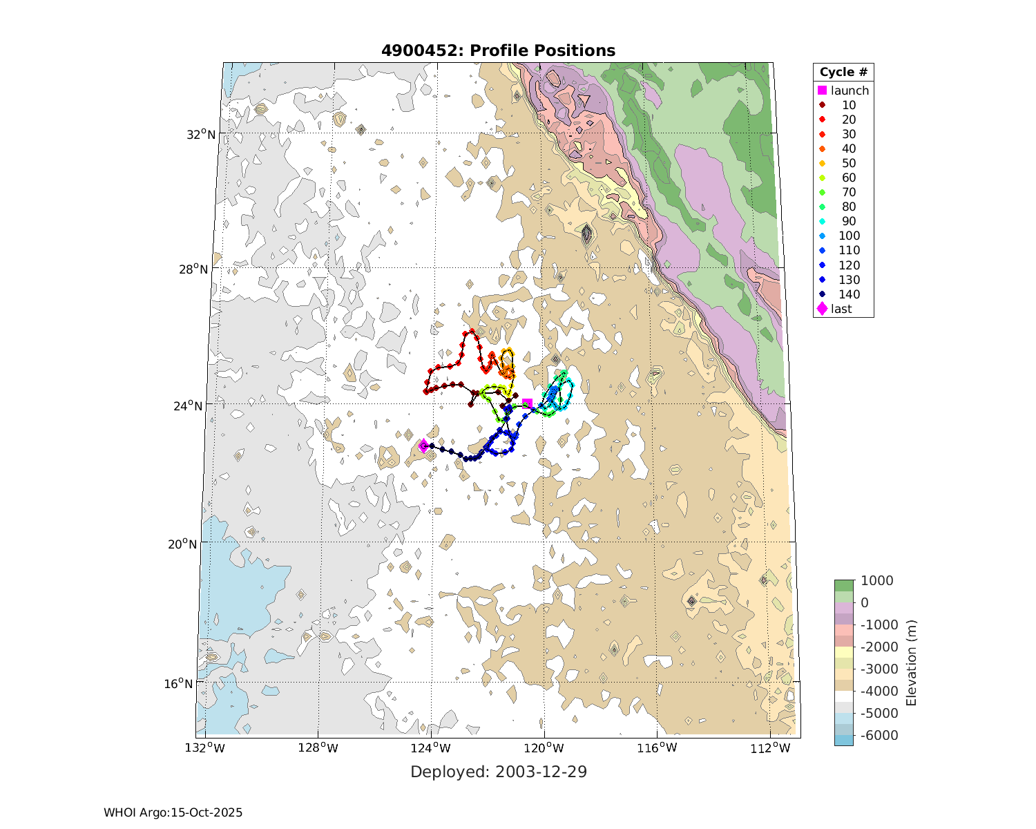 | WMO: #4900452 DAC: aoml PI: GREGORY C. JOHNSON APEX: #1224 SBE41: #1245 DRUCK_2900PSIA: #4941 Altimeter Comparison (IFREMER) EuroArgo Link | ![]() |