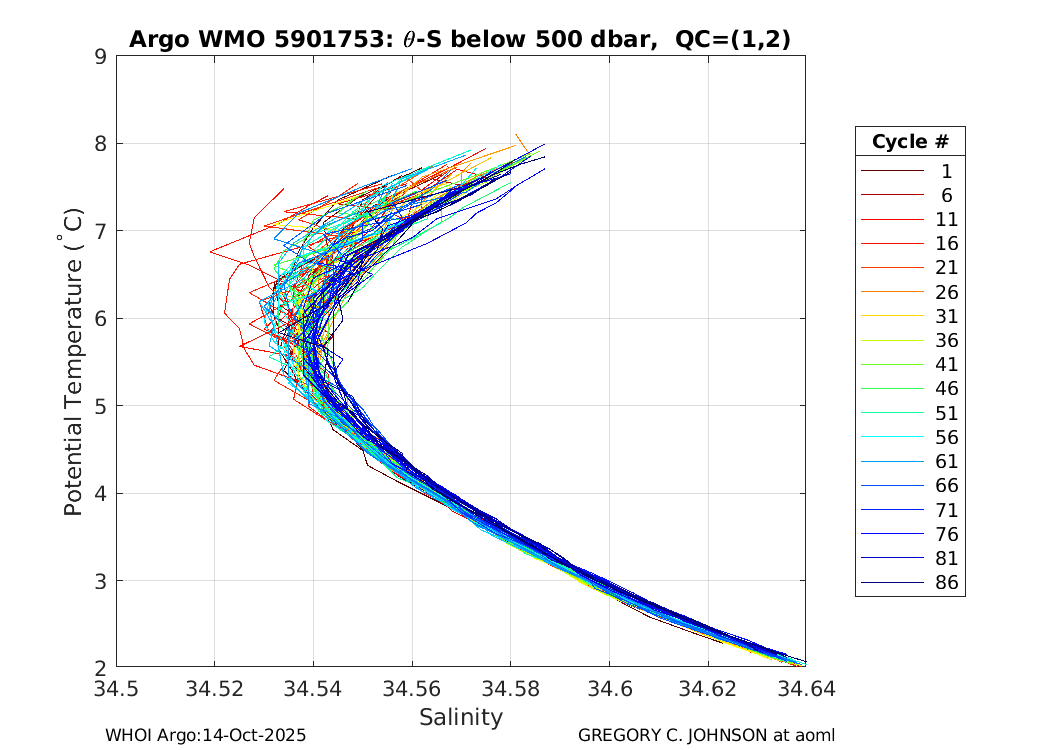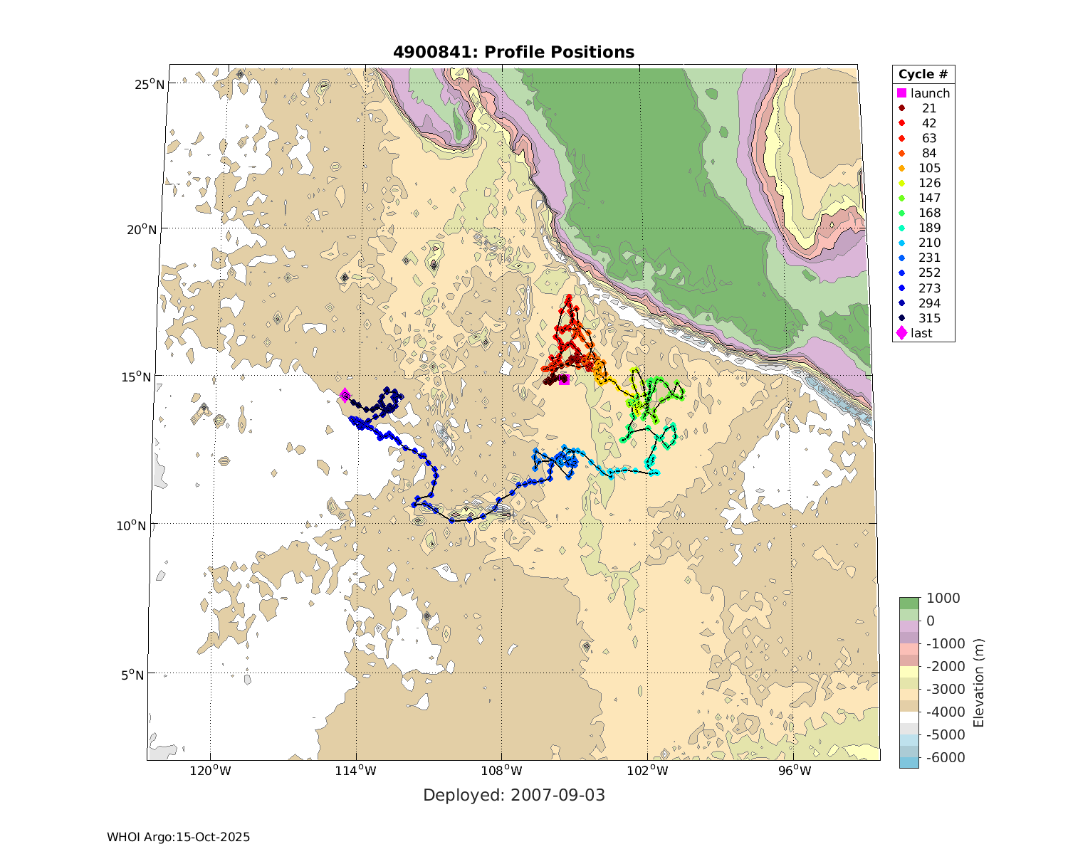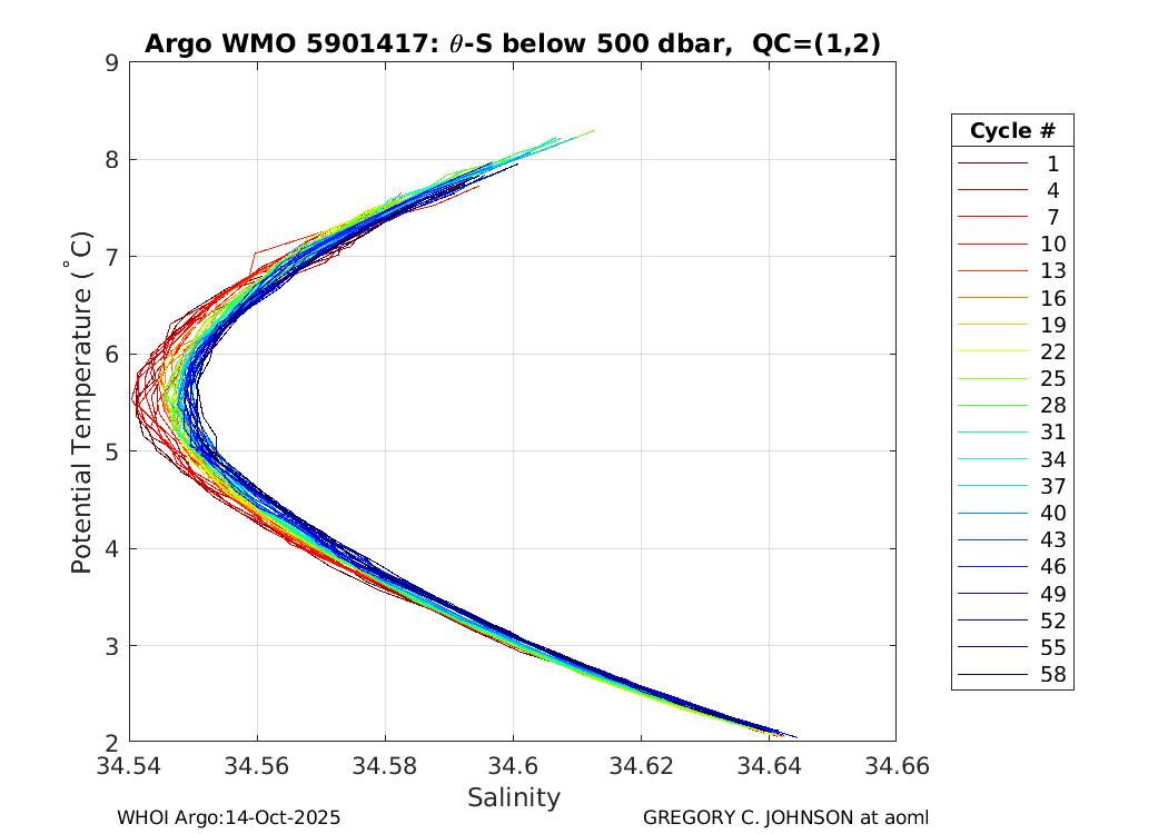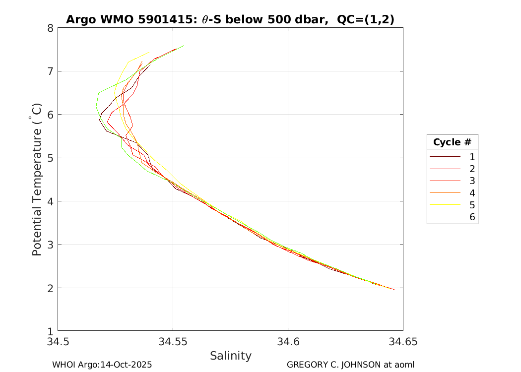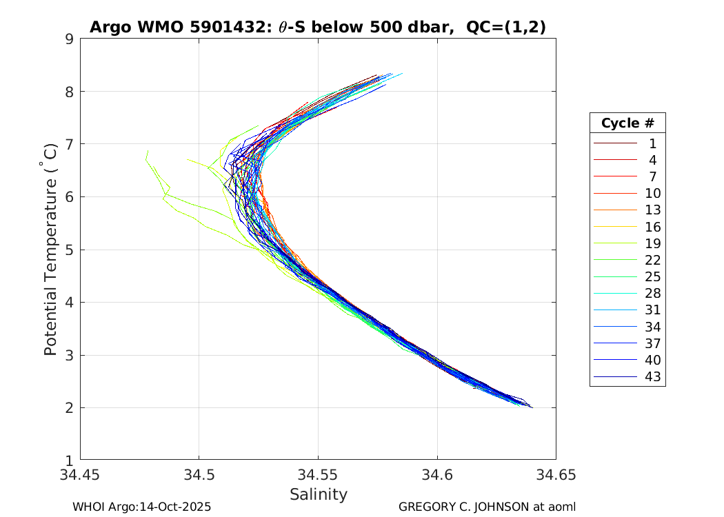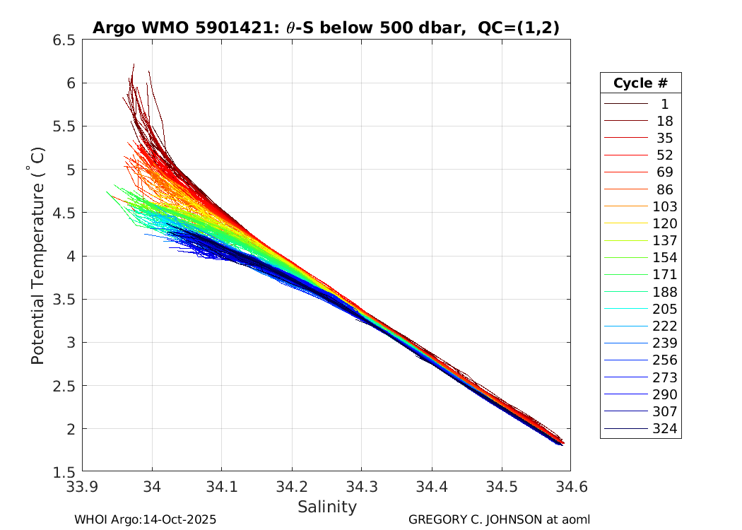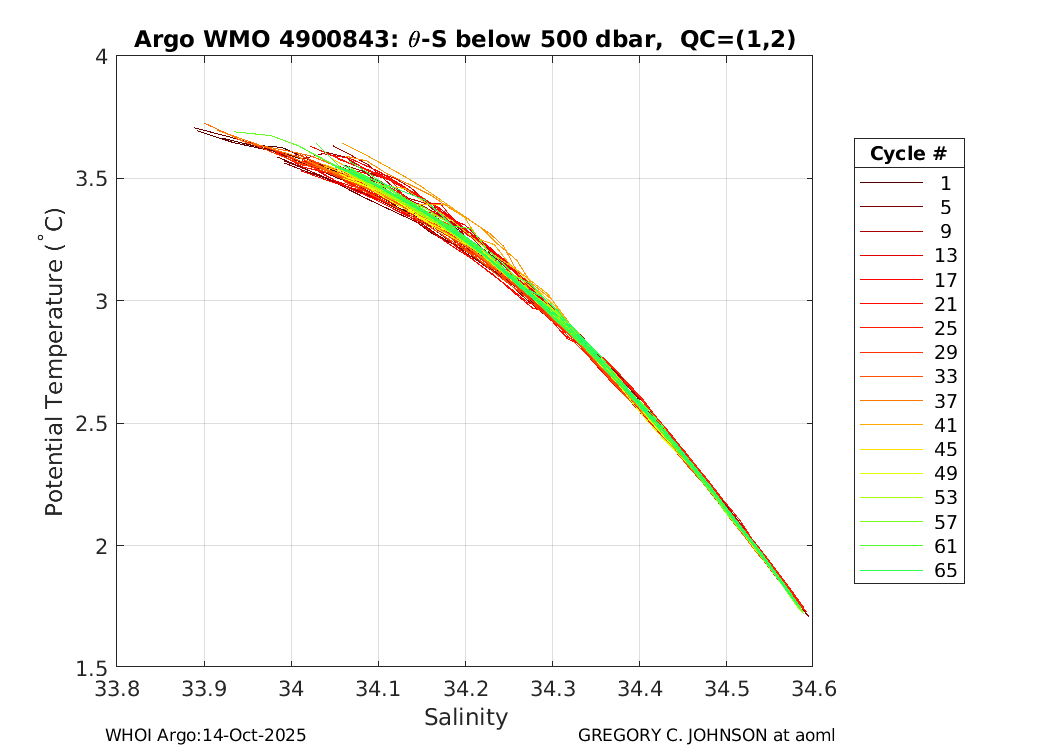 | WMO: #4900841 DAC: aoml PI: GREGORY C. JOHNSON APEX: #3408 SBE41: #3407 DRUCK_2900PSIA: #2424854 Altimeter Comparison (IFREMER) EuroArgo Link | ![]() |