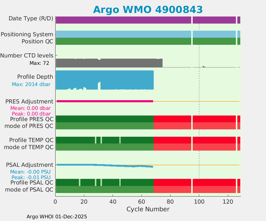 | WMO: #4900843 DAC: aoml PI: GREGORY C. JOHNSON APEX: #3399 SBE41: #3032 DRUCK_2900PSIA: #2328575 Altimeter Comparison (IFREMER) EuroArgo Link | ![]() |