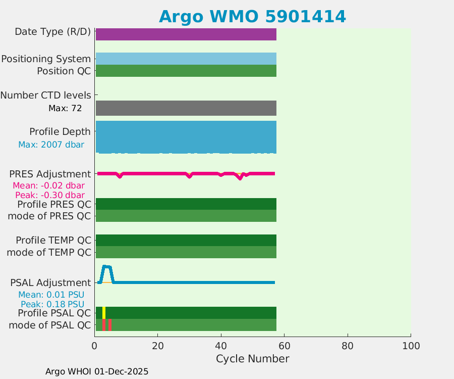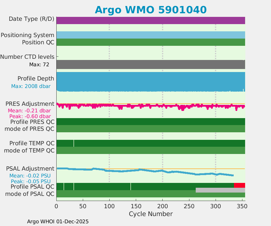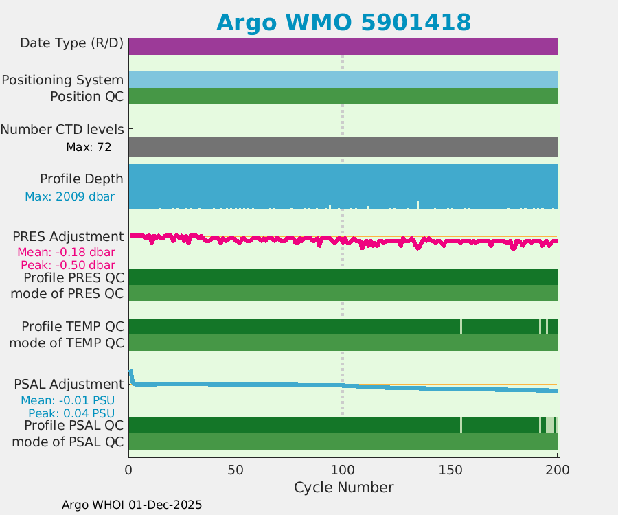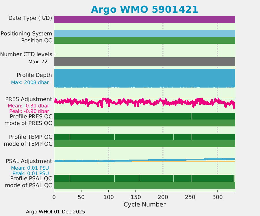 | WMO: #5901810 DAC: aoml PI: GREGORY C. JOHNSON APEX: #3365 SBE41: #3425 DRUCK_2900PSIA: #2432266 Altimeter Comparison (IFREMER) EuroArgo Link | ![]() |