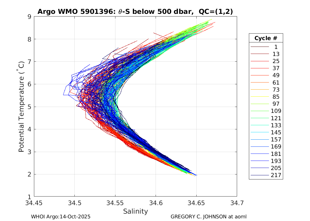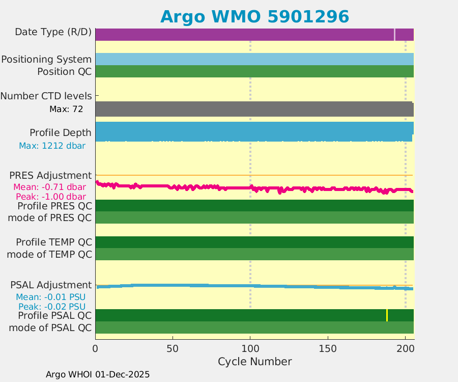 | WMO: #5901396 DAC: aoml PI: GREGORY C. JOHNSON APEX: #2991 SBE41: #3048 DRUCK_2900PSIA: #2324306 Altimeter Comparison (IFREMER) EuroArgo Link | ![]() |