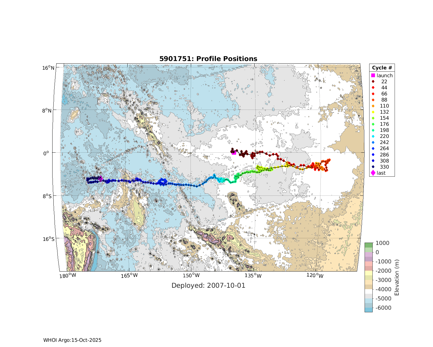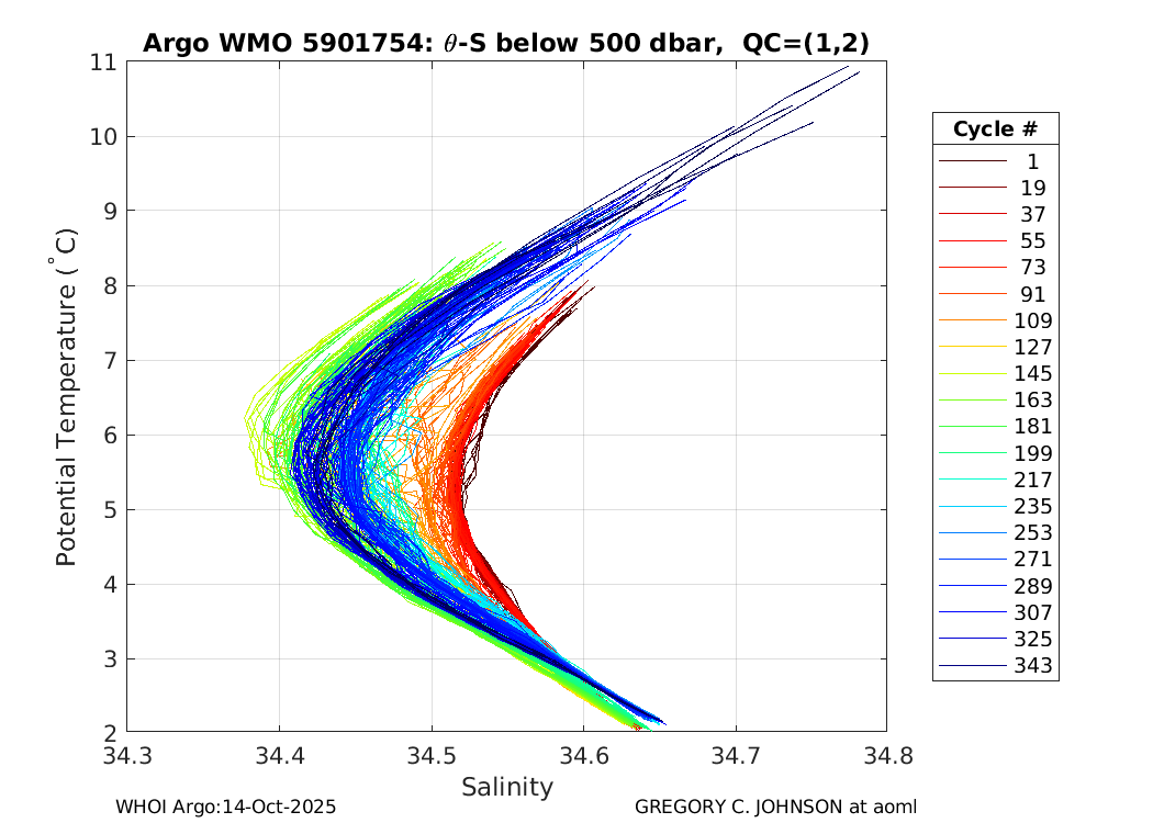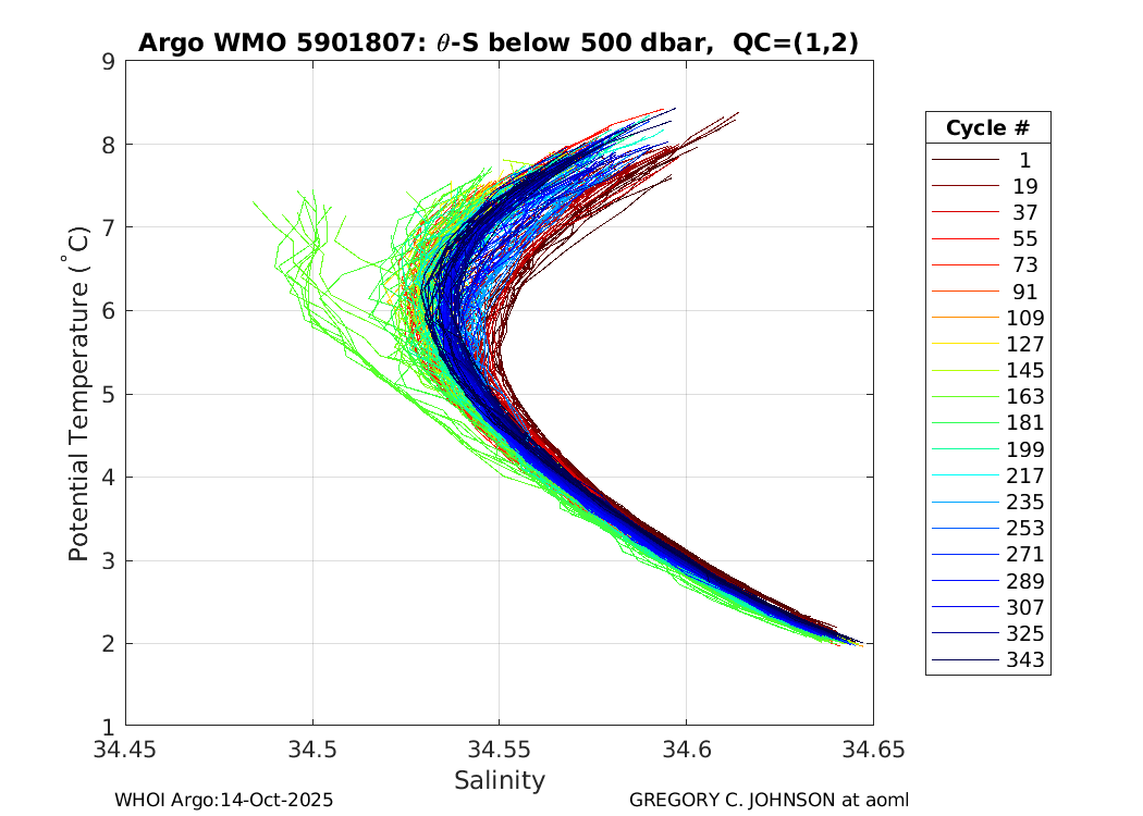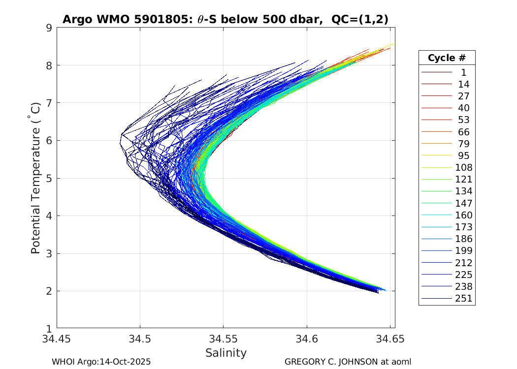 | WMO: #5901805 DAC: aoml PI: GREGORY C. JOHNSON APEX: #3354 SBE41: #3357 DRUCK_2900PSIA: #2418908 Altimeter Comparison (IFREMER) EuroArgo Link | ![]() |