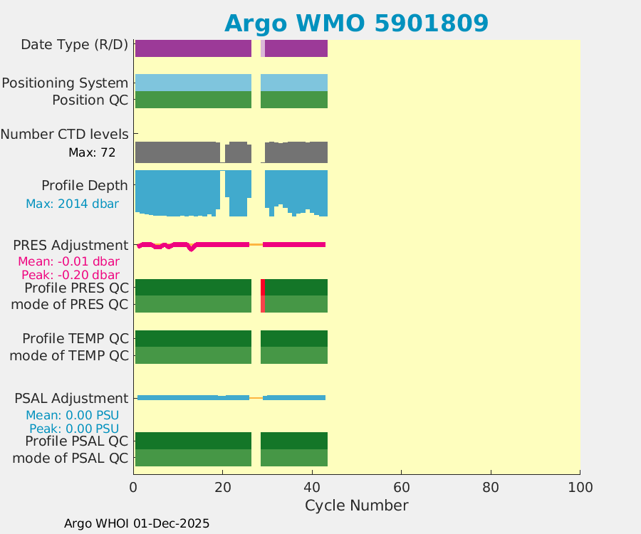 | WMO: #5901809 DAC: aoml PI: GREGORY C. JOHNSON APEX: #3364 SBE41: #3424 DRUCK_2900PSIA: #2432265 Altimeter Comparison (IFREMER) EuroArgo Link | ![]() |