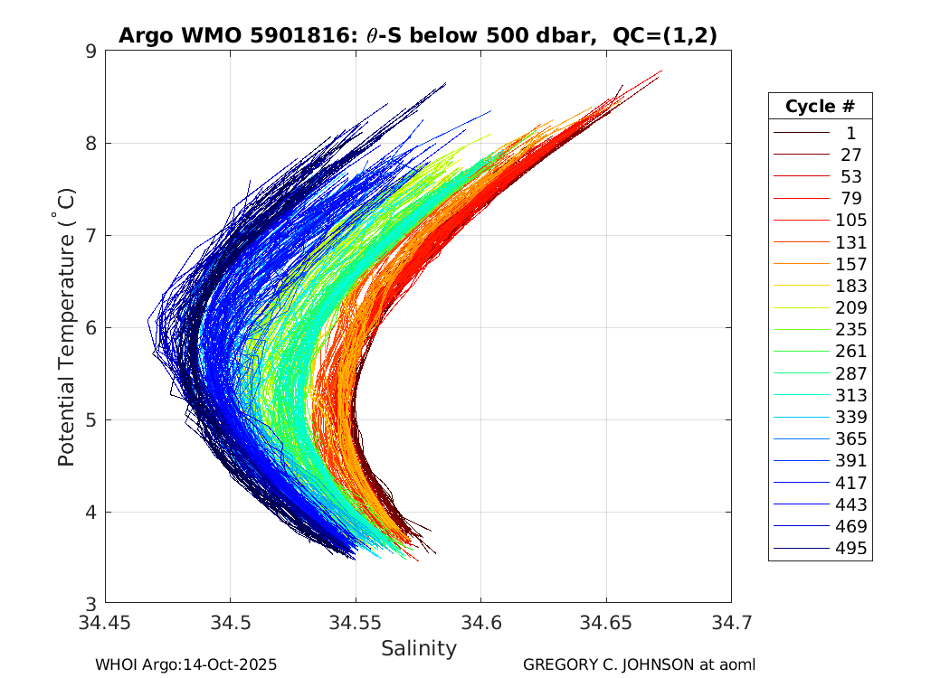 | WMO: #5901816 DAC: aoml PI: GREGORY C. JOHNSON APEX: #3058 SBE41: #3114 DRUCK_2900PSIA: #2346086 Altimeter Comparison (IFREMER) EuroArgo Link | ![]() |