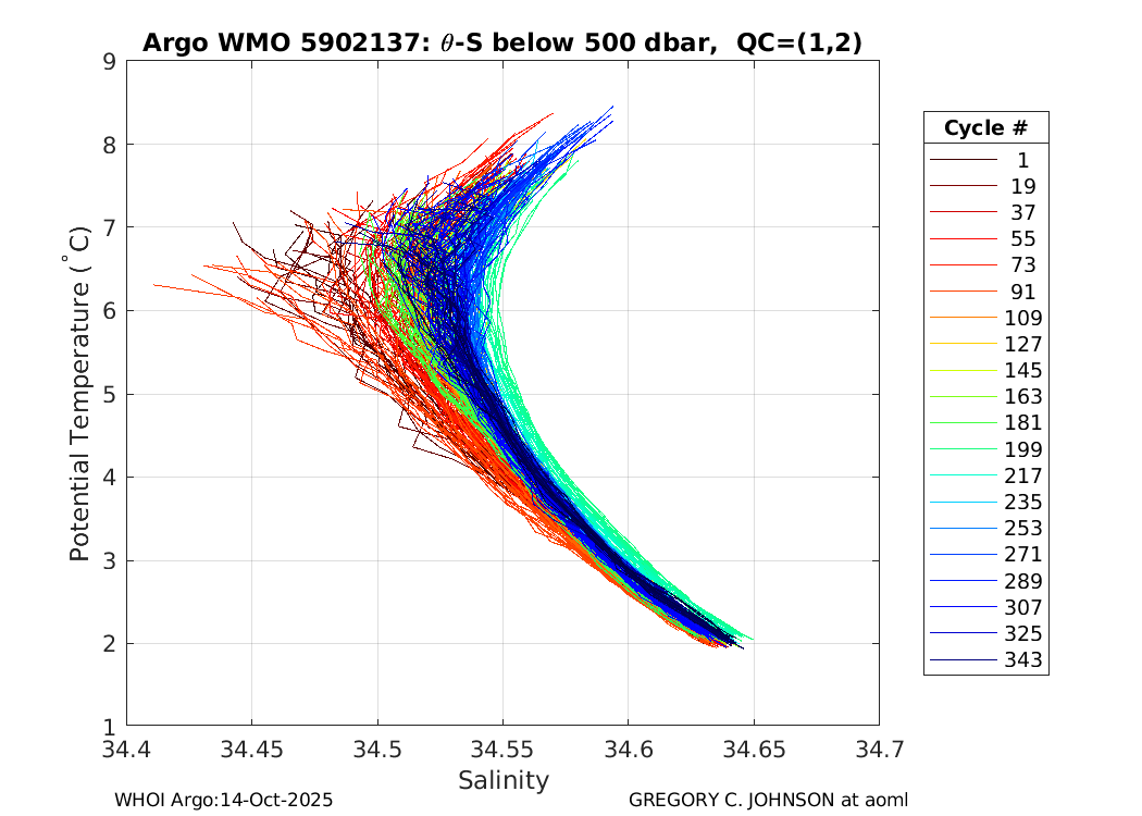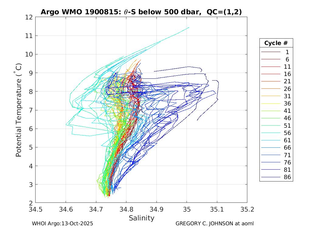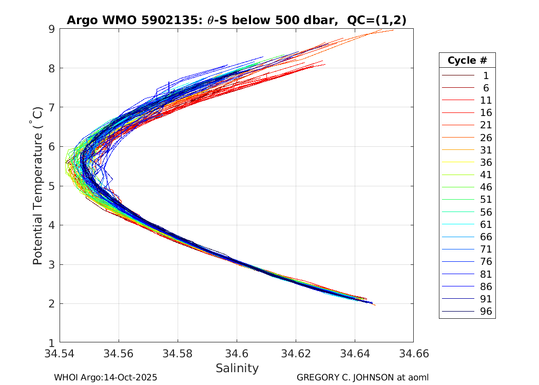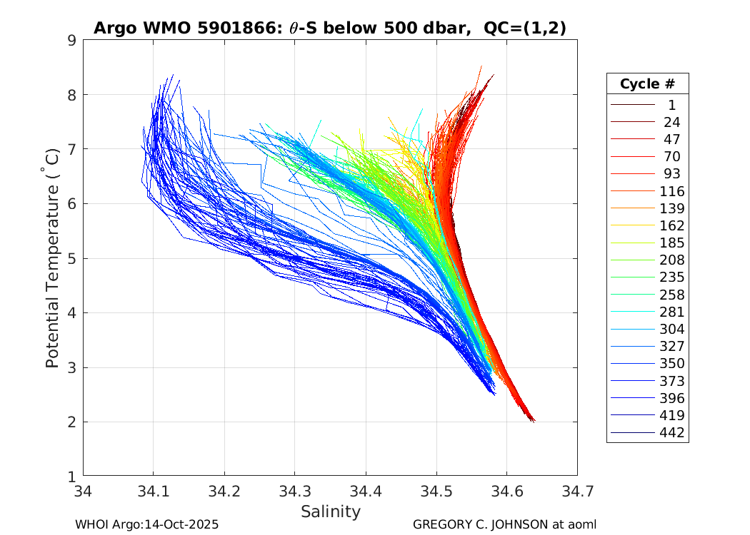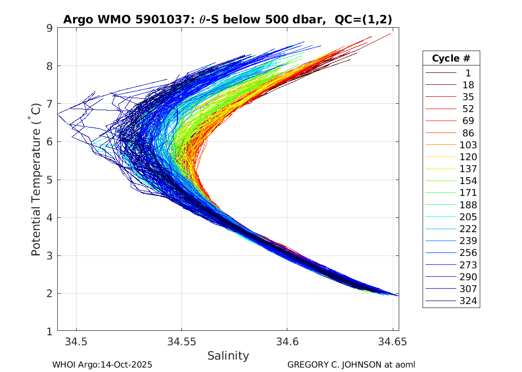 | WMO: #5901866 DAC: aoml PI: GREGORY C. JOHNSON APEX: #3582 SBE41: #3479 DRUCK_2900PSIA: #2438991 Altimeter Comparison (IFREMER) EuroArgo Link | ![]() |