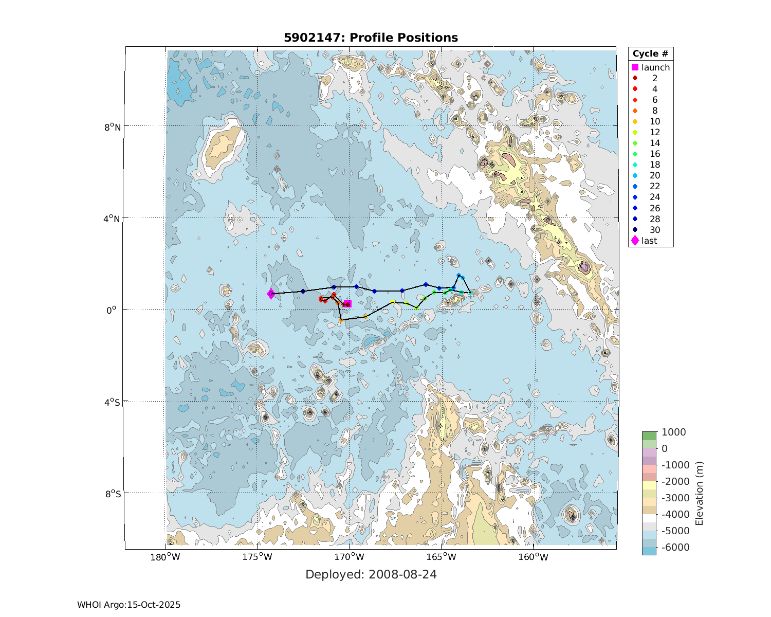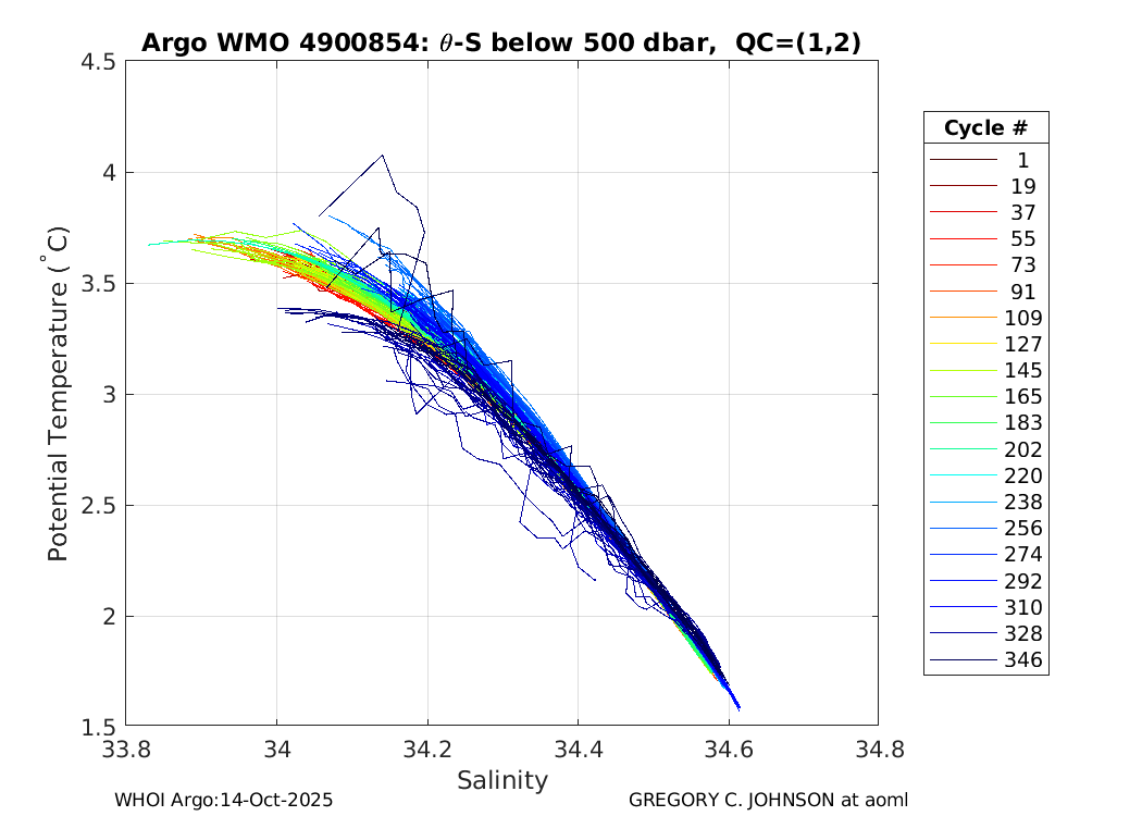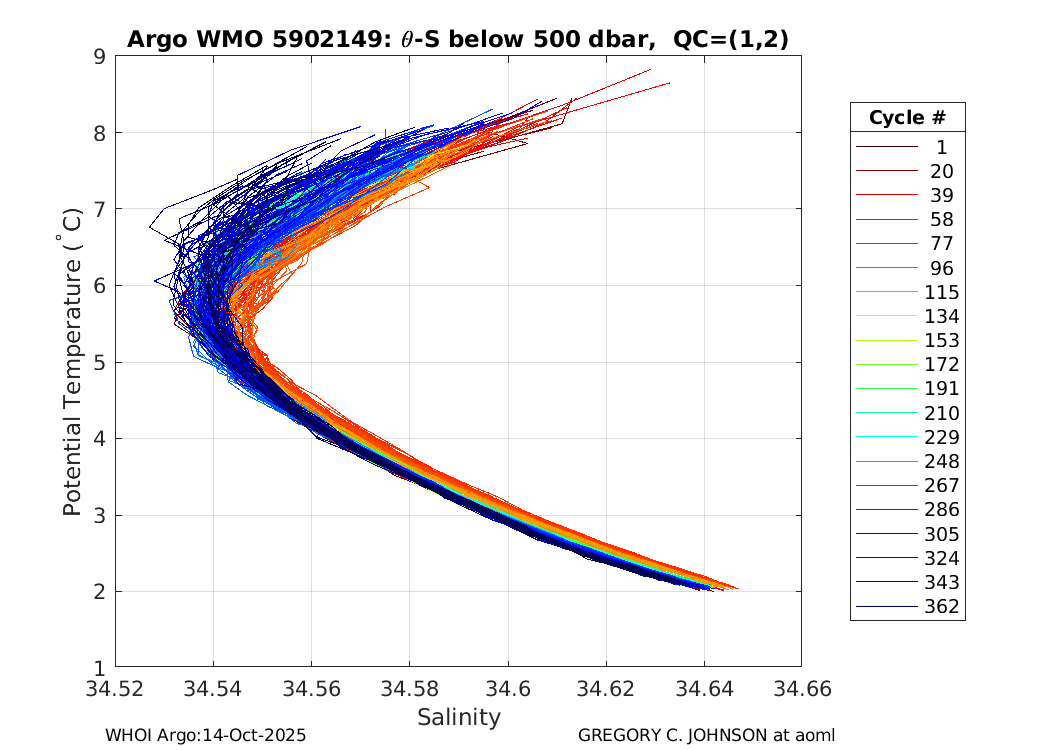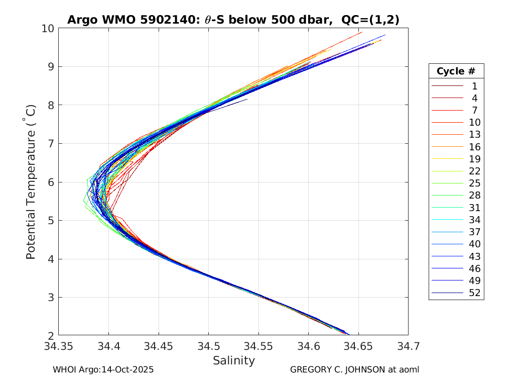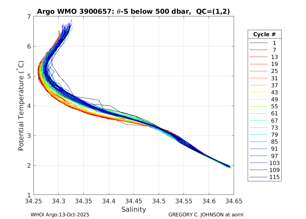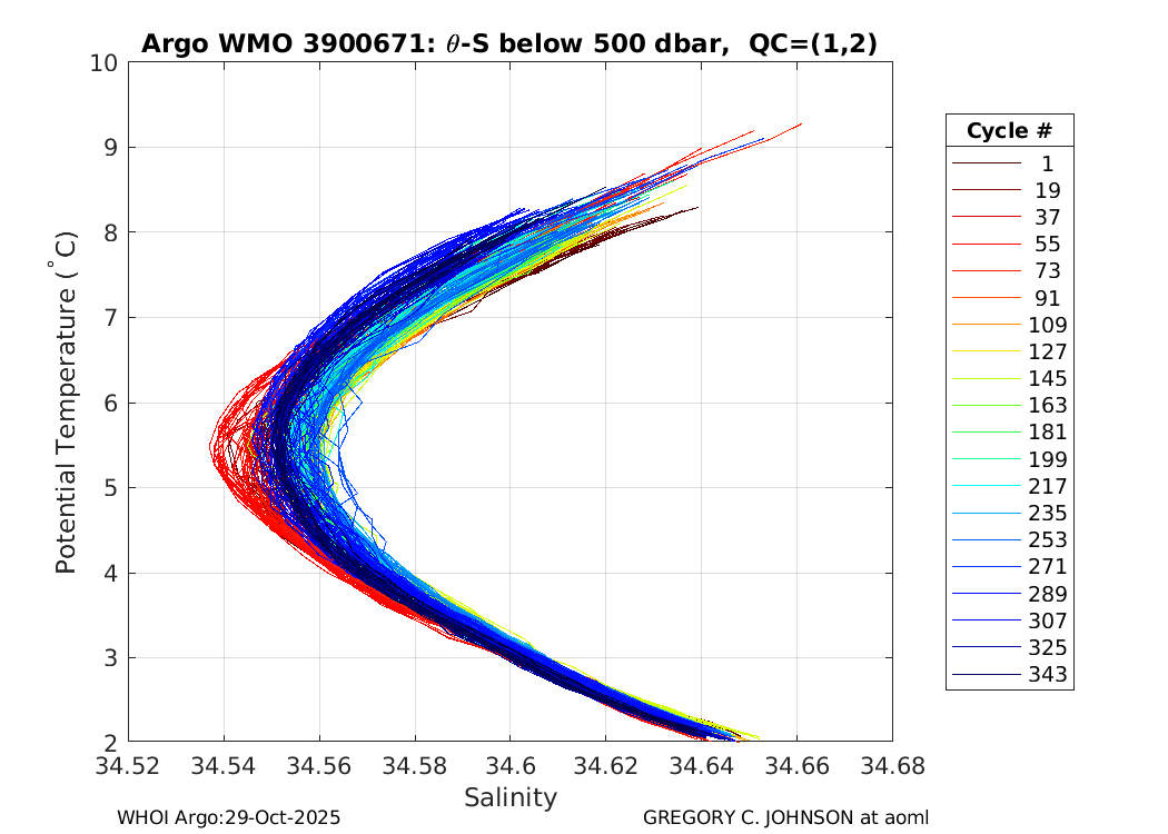 | WMO: #4900810 DAC: aoml PI: GREGORY C. JOHNSON APEX: #3366 SBE41: #3379 DRUCK_2900PSIA: #2619293 Altimeter Comparison (IFREMER) EuroArgo Link | ![]() |