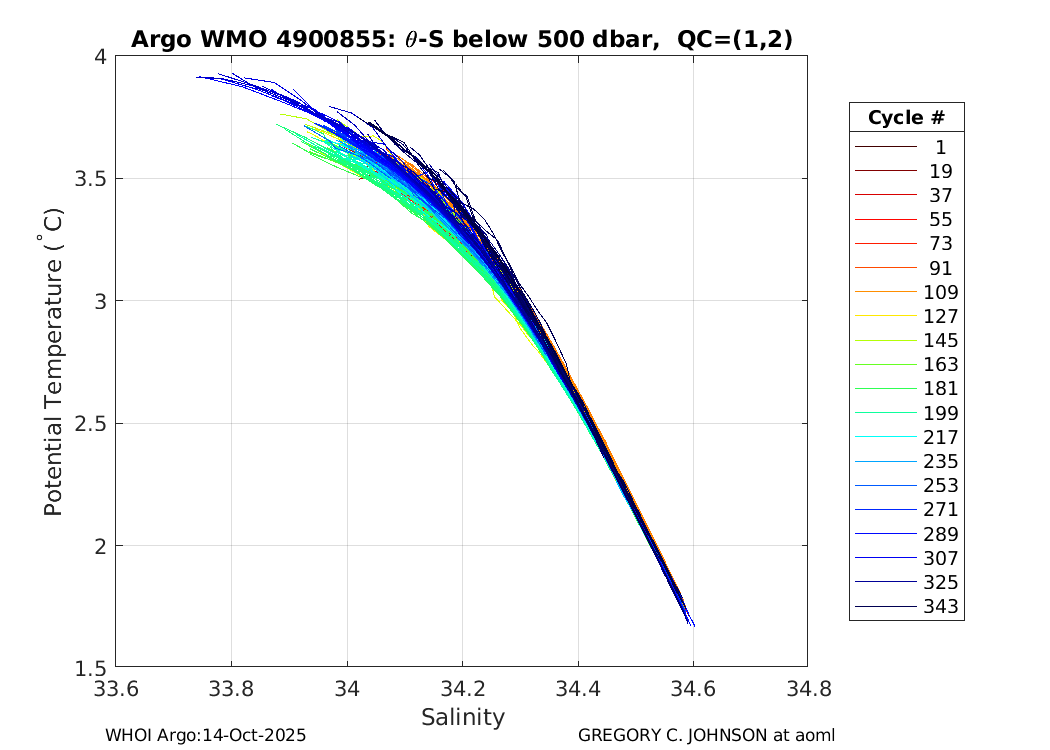 | WMO: #4900855 DAC: aoml PI: GREGORY C. JOHNSON APEX: #4010 SBE41: #4089 DRUCK_2900PSIA: #2636083 Altimeter Comparison (IFREMER) EuroArgo Link | ![]() |