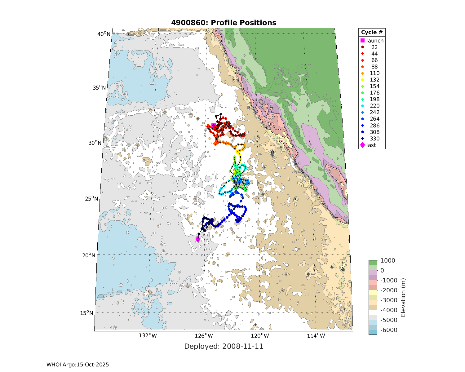 | WMO: #4900860 DAC: aoml PI: GREGORY C. JOHNSON APEX: #3965 SBE41: #3949 DRUCK_2900PSIA: #2606498 Altimeter Comparison (IFREMER) EuroArgo Link | ![]() |