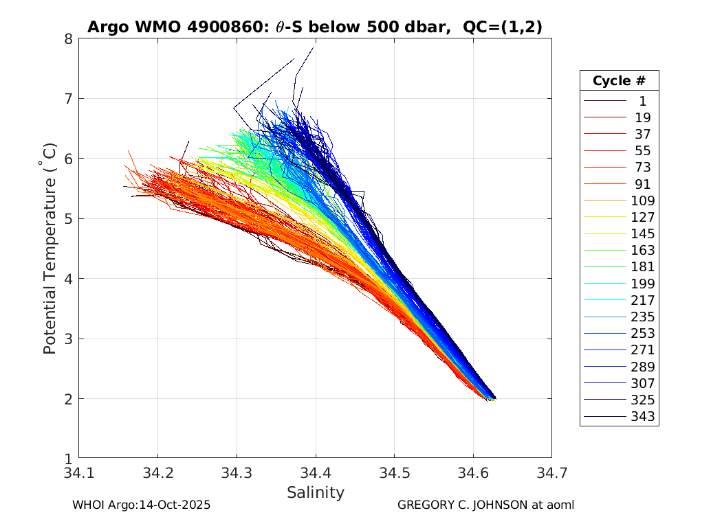 | WMO: #5901860 DAC: aoml PI: GREGORY C. JOHNSON APEX: #3401 SBE41: #3403 DRUCK_2900PSIA: #2424850 Altimeter Comparison (IFREMER) EuroArgo Link | ![]() |