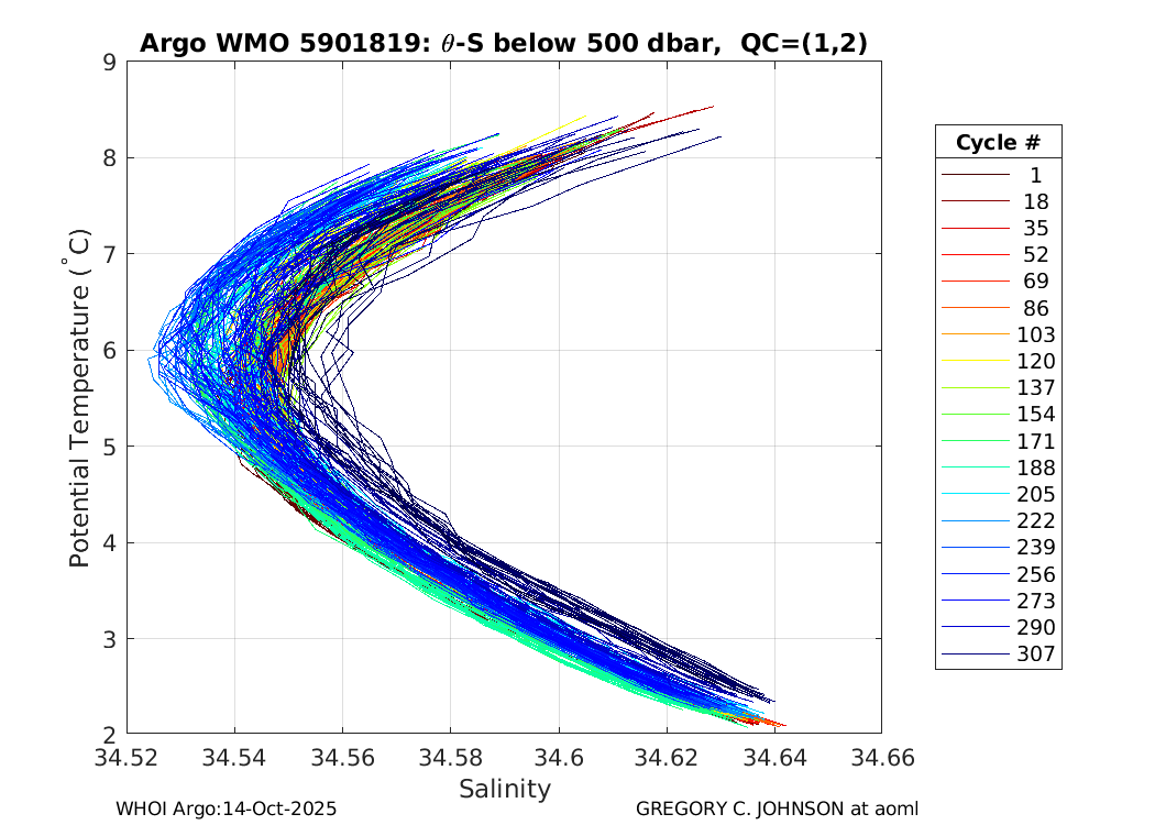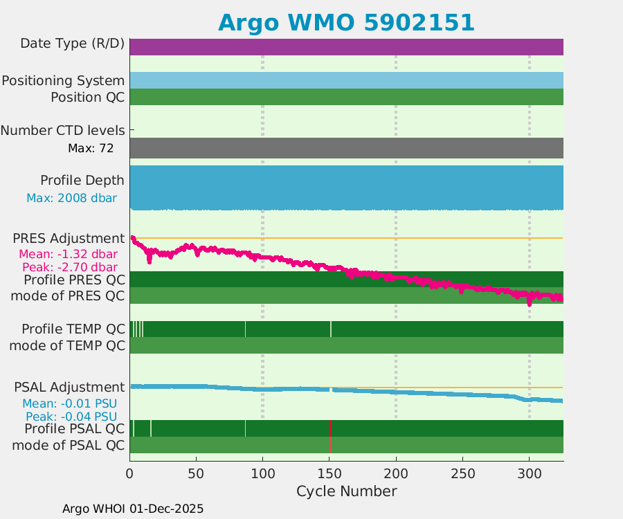 | WMO: #5901859 DAC: aoml PI: GREGORY C. JOHNSON APEX: #3357 SBE41: #3360 DRUCK_2900PSIA: #2418911 Altimeter Comparison (IFREMER) EuroArgo Link | ![]() |