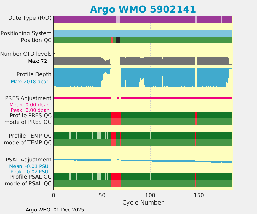 | WMO: #1900814 DAC: aoml PI: GREGORY C. JOHNSON APEX: #4003 SBE41: #3959 DRUCK_2900PSIA: #Unknown Altimeter Comparison (IFREMER) EuroArgo Link | ![]() |