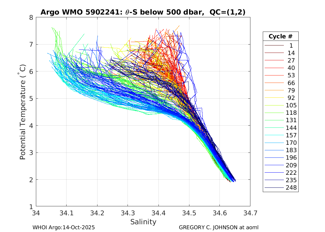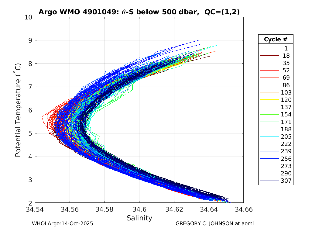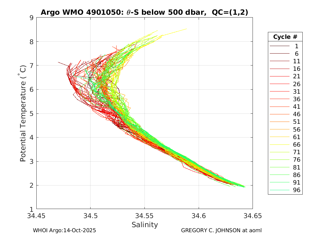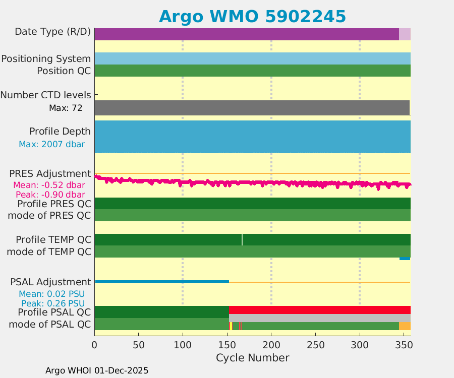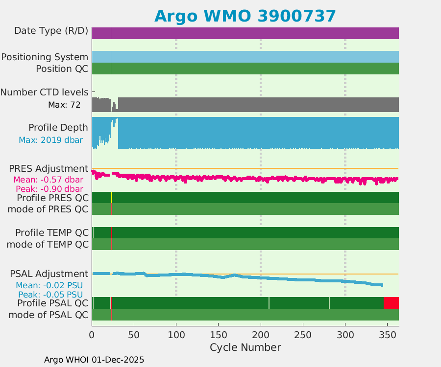 | WMO: #4901050 DAC: aoml PI: GREGORY C. JOHNSON APEX: #4360 SBE41: #4439 DRUCK_2900PSIA: #2711903 Altimeter Comparison (IFREMER) EuroArgo Link | ![]() |