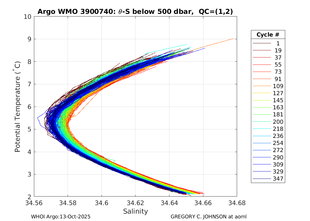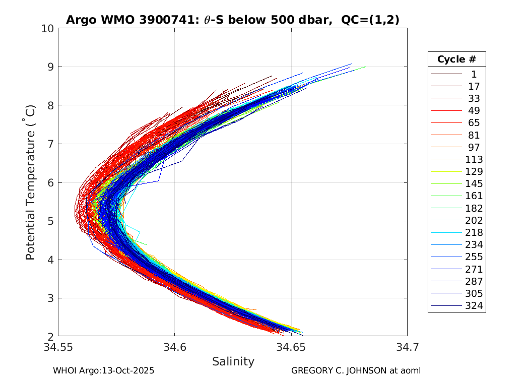 | WMO: #4901048 DAC: aoml PI: GREGORY C. JOHNSON APEX: #4311 SBE41: #4326 DRUCK_2900PSIA: #2729317 Altimeter Comparison (IFREMER) EuroArgo Link | ![]() |