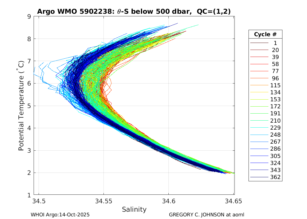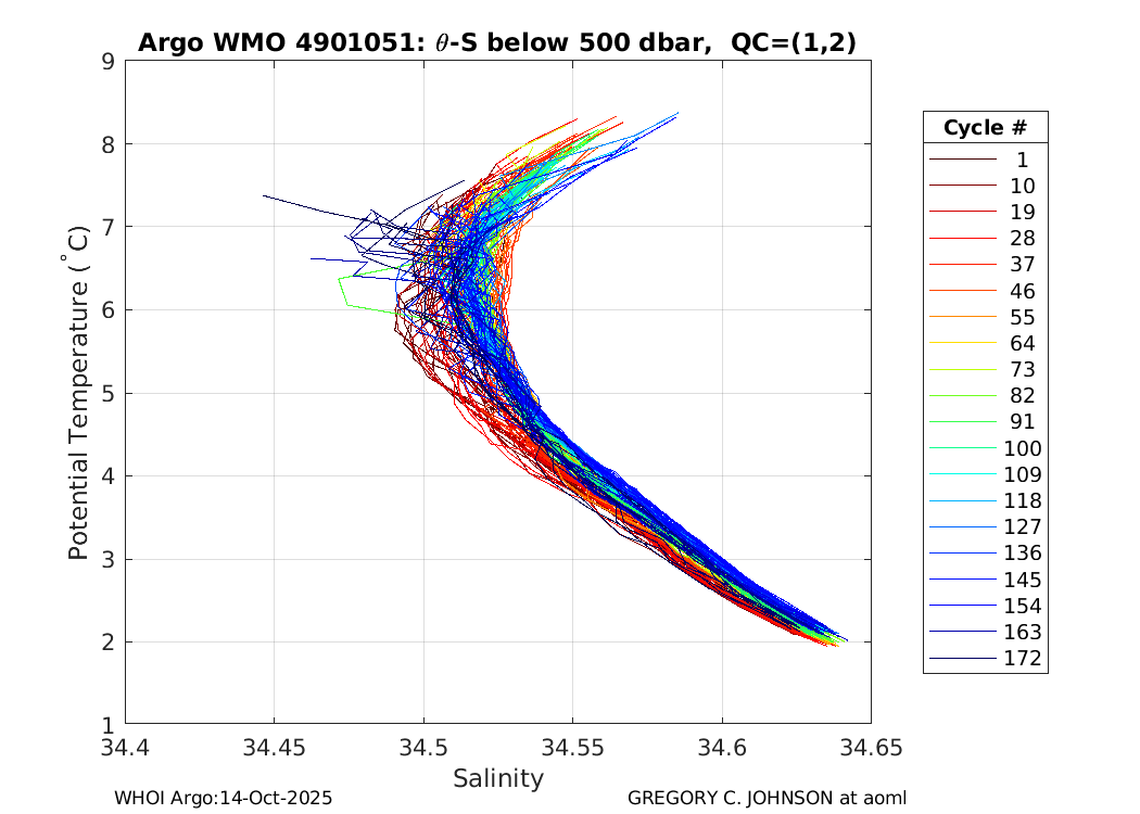 | WMO: #4901051 DAC: aoml PI: GREGORY C. JOHNSON APEX: #4361 SBE41: #4445 DRUCK_2900PSIA: #2711935 Altimeter Comparison (IFREMER) EuroArgo Link | ![]() |