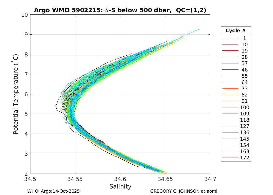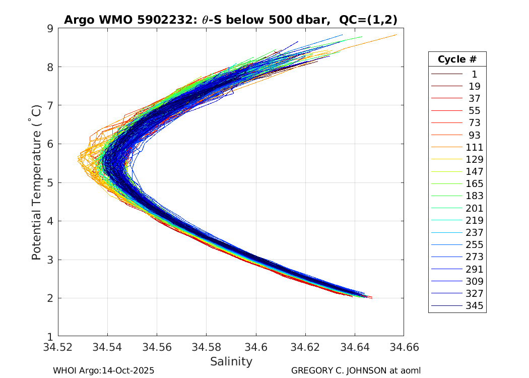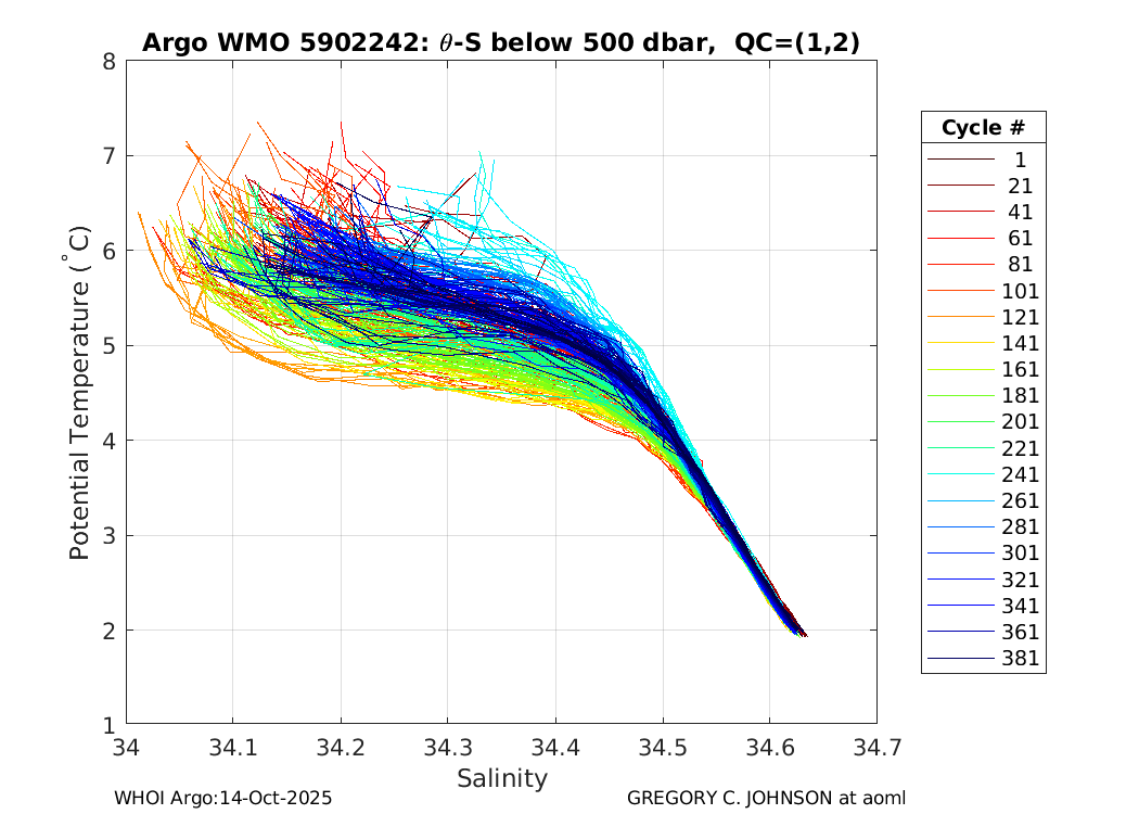 | WMO: #5902234 DAC: aoml PI: GREGORY C. JOHNSON APEX: #4181 SBE41: #4247 DRUCK_2900PSIA: #2711879 Altimeter Comparison (IFREMER) EuroArgo Link | ![]() |