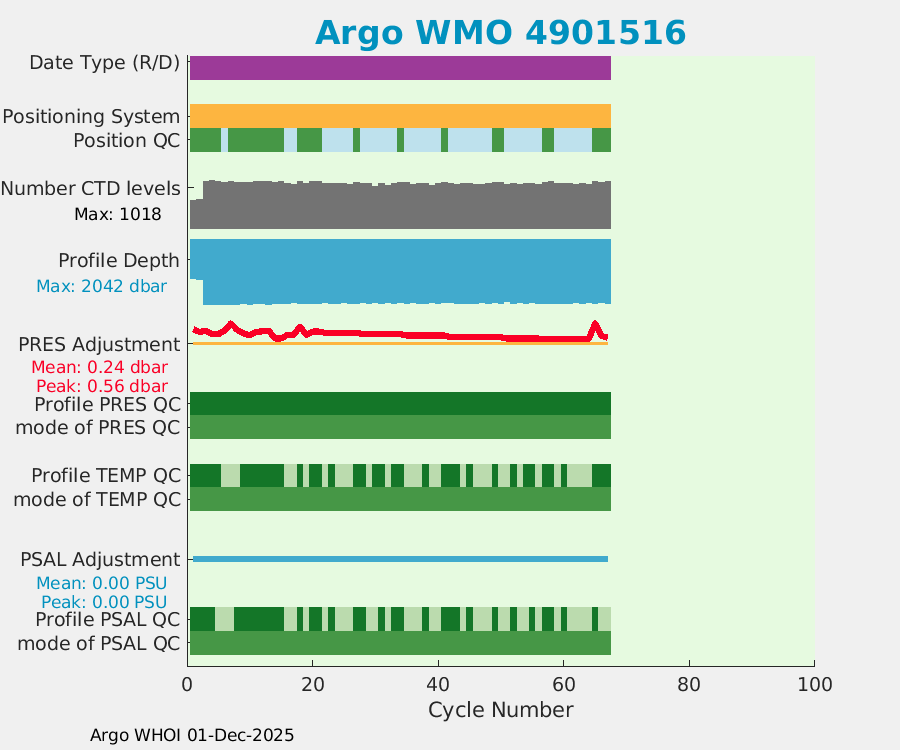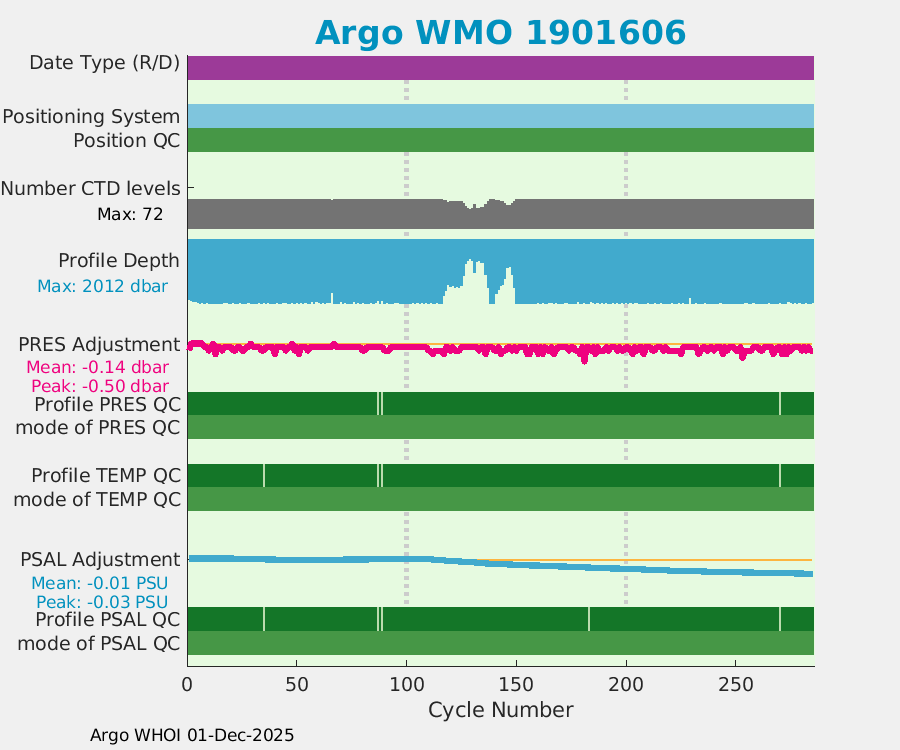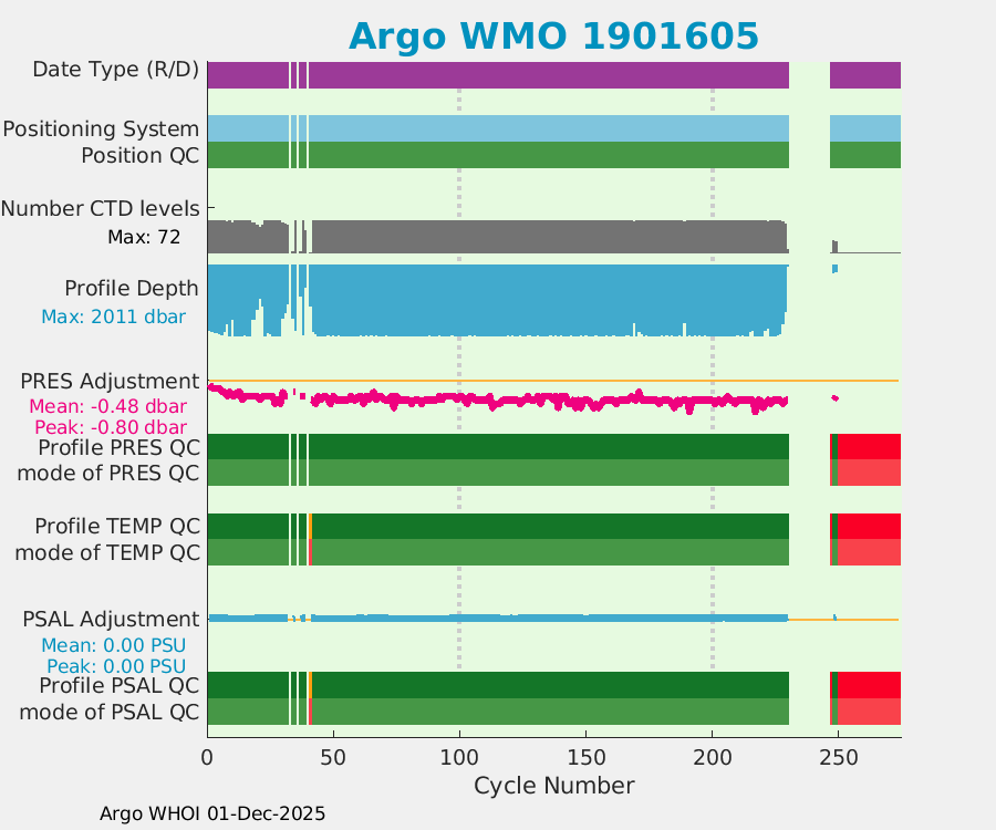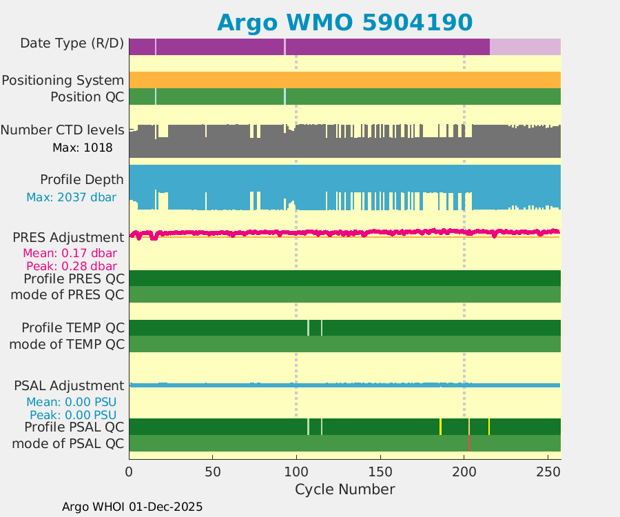| WMO: #4901517 DAC: aoml PI: GREGORY C. JOHNSON NAVIS_A: #155 SBE41CP: #4212 DRUCK_2900PSIA: #3475149 Altimeter Comparison (IFREMER) EuroArgo Link | ![]() |