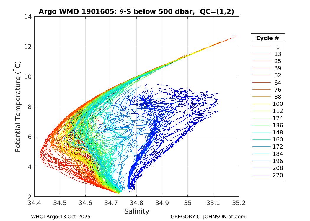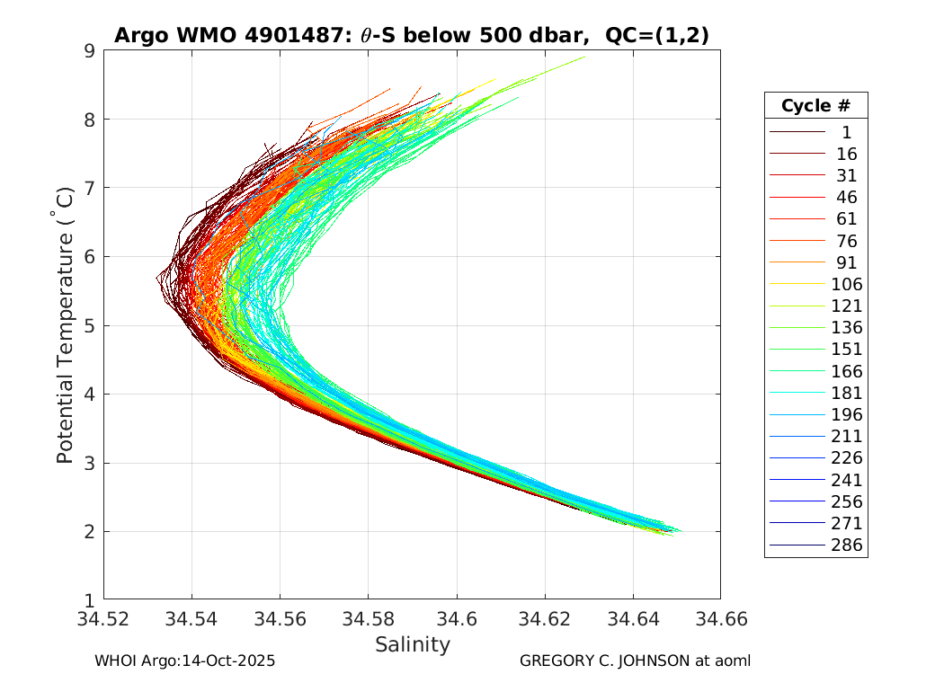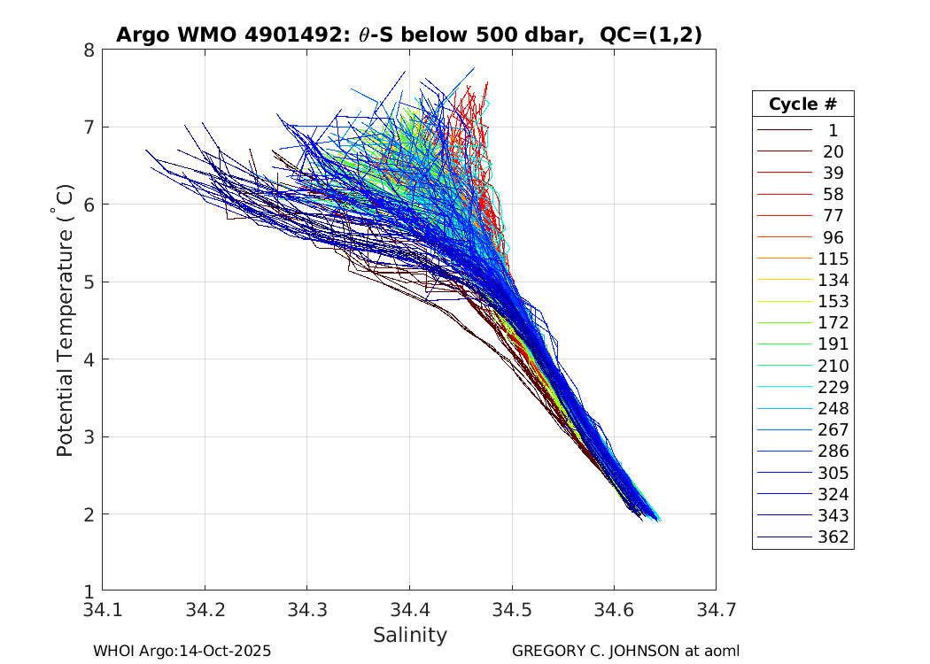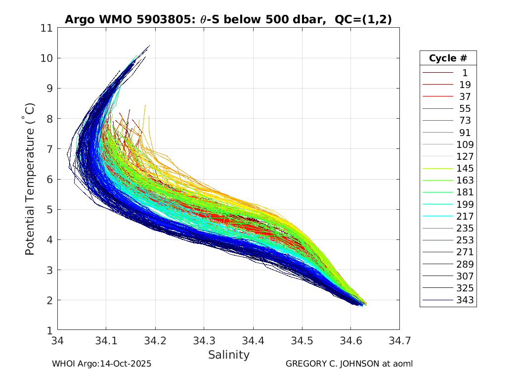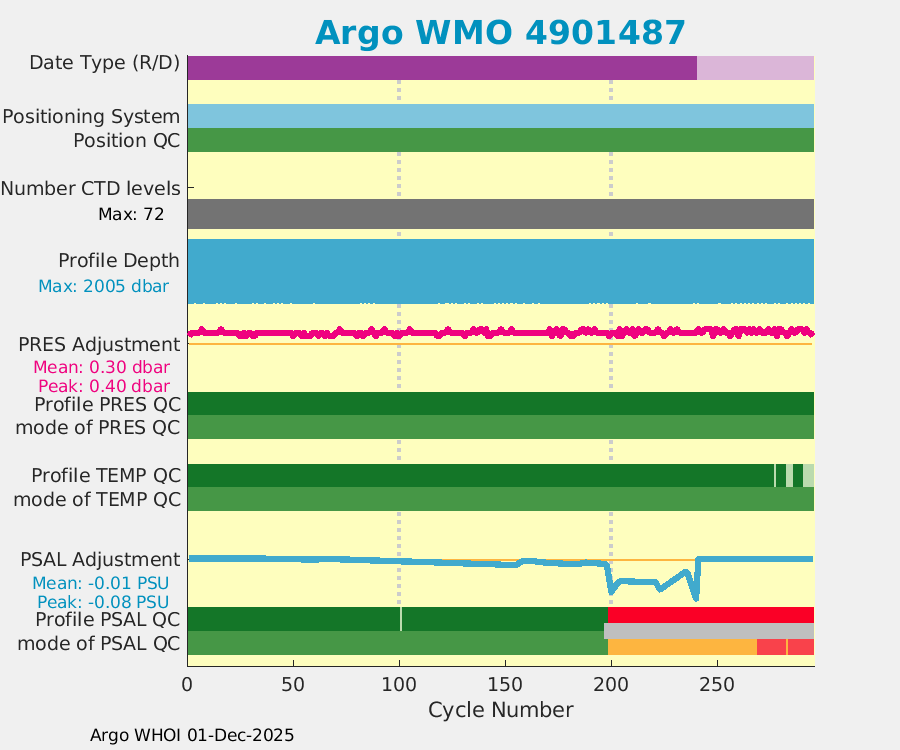 | WMO: #4901487 DAC: aoml PI: GREGORY C. JOHNSON APEX: #5828 SBE41: #5644 DRUCK_2900PSIA: #3220356 Altimeter Comparison (IFREMER) EuroArgo Link | ![]() |