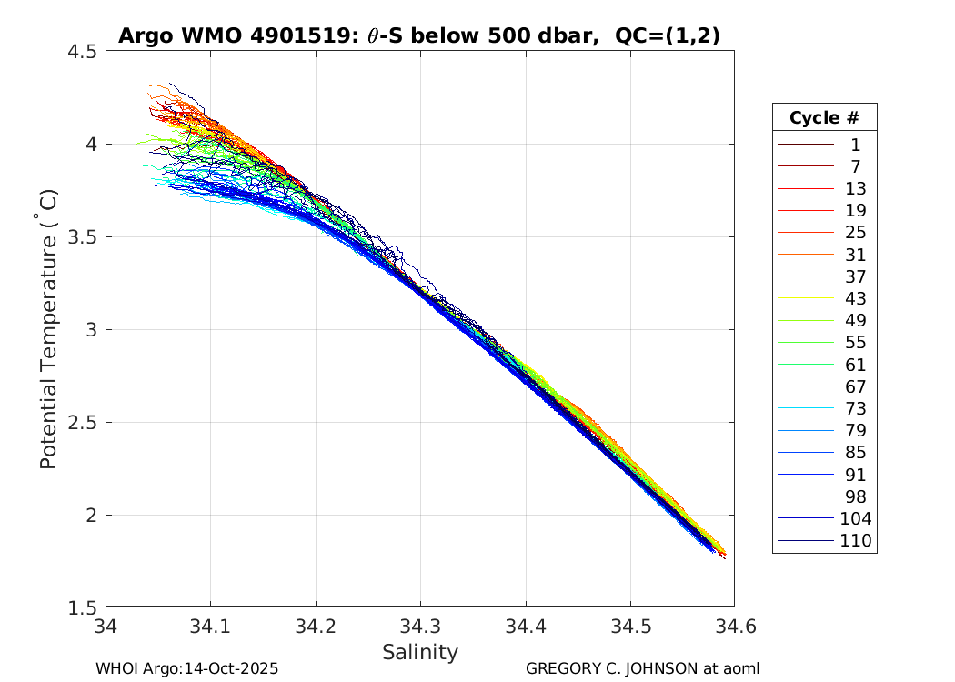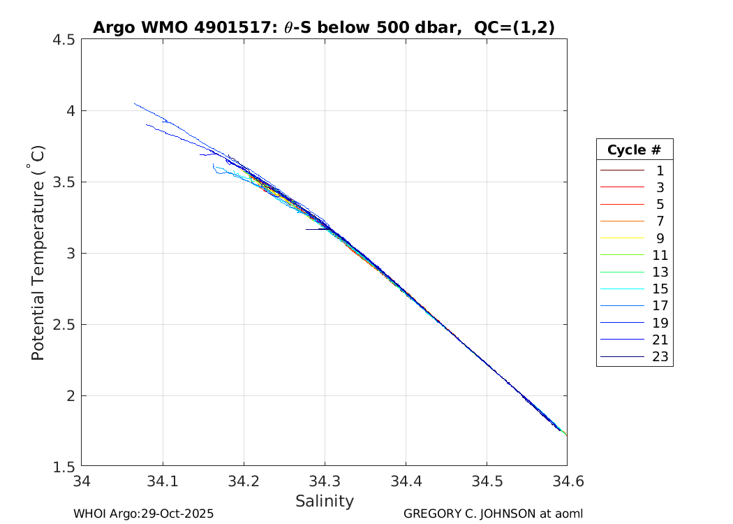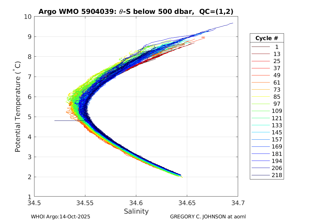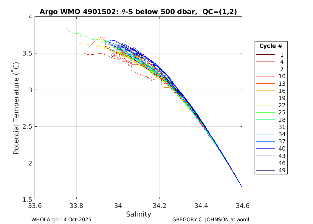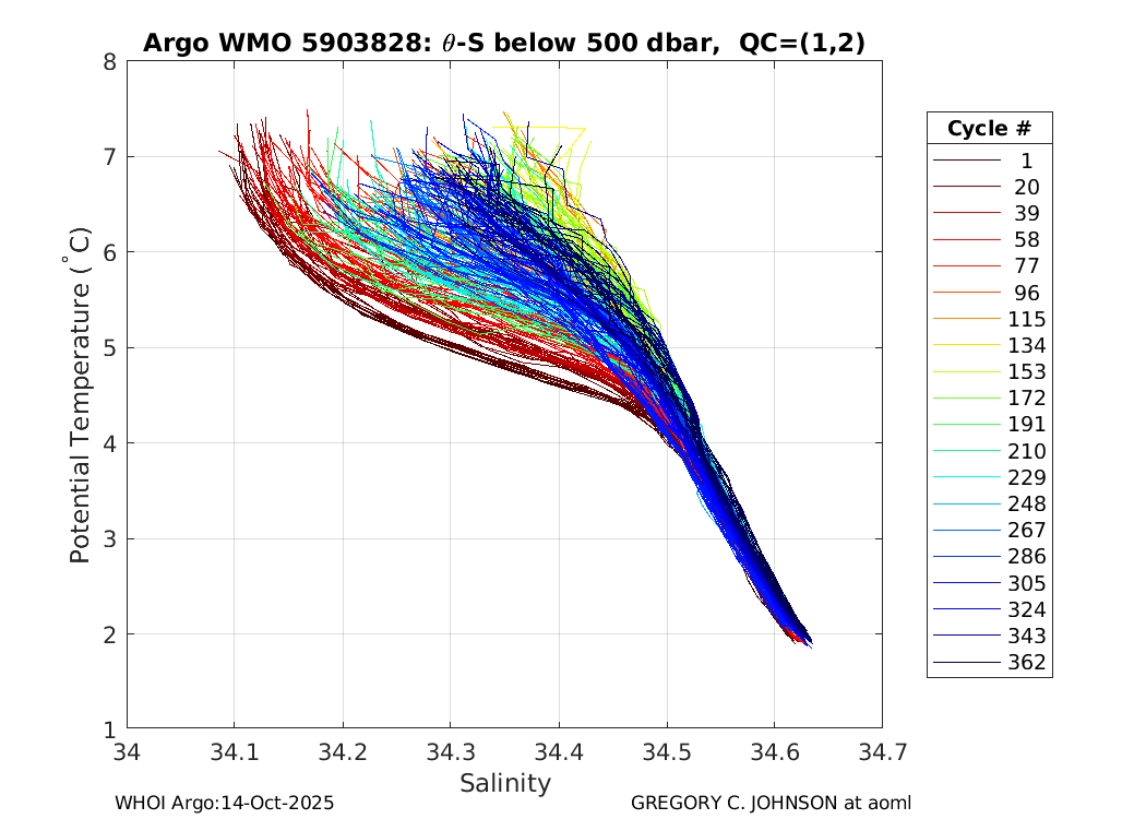 | WMO: #4901487 DAC: aoml PI: GREGORY C. JOHNSON APEX: #5828 SBE41: #5644 DRUCK_2900PSIA: #3220356 Altimeter Comparison (IFREMER) EuroArgo Link | ![]() |