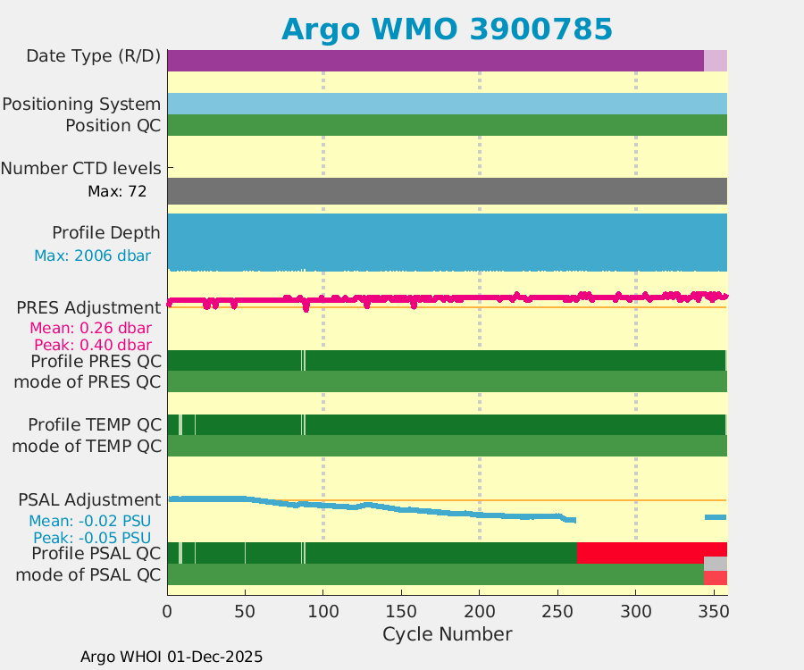 | WMO: #4901489 DAC: aoml PI: GREGORY C. JOHNSON APEX: #5830 SBE41: #5639 DRUCK_2900PSIA: #3244237 Altimeter Comparison (IFREMER) EuroArgo Link | ![]() |