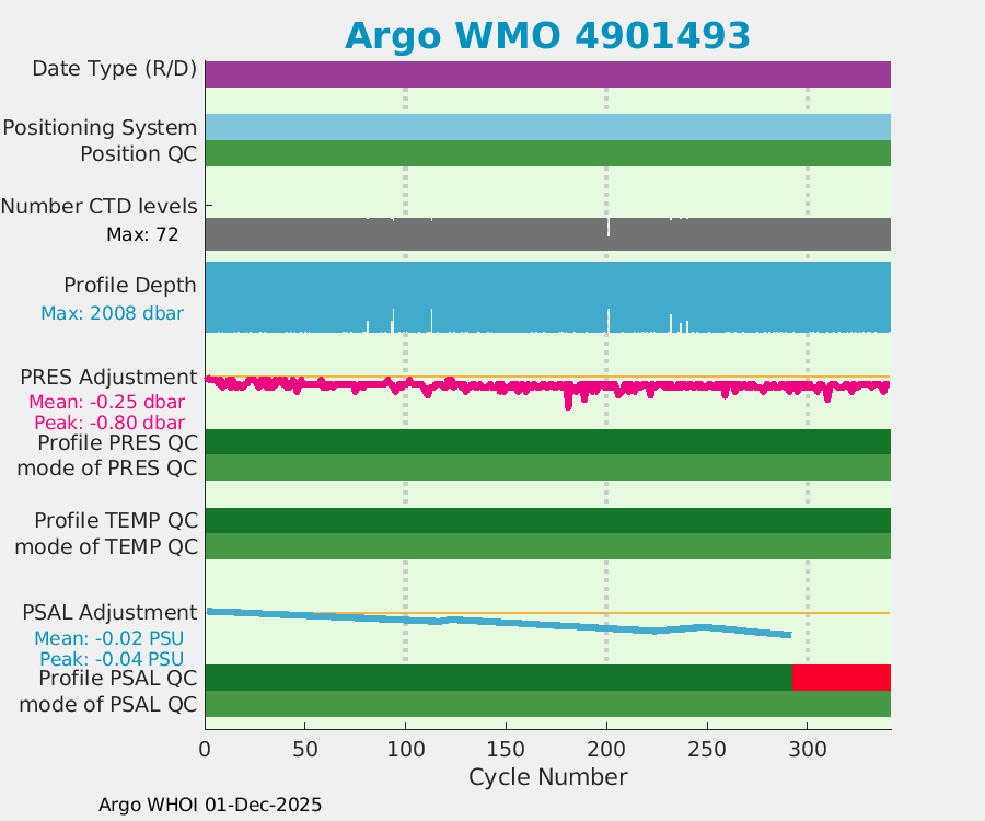 | WMO: #4901491 DAC: aoml PI: GREGORY C. JOHNSON APEX: #5833 SBE41: #5493 DRUCK_2900PSIA: #3255076 Altimeter Comparison (IFREMER) EuroArgo Link | ![]() |