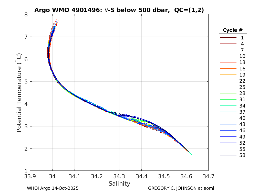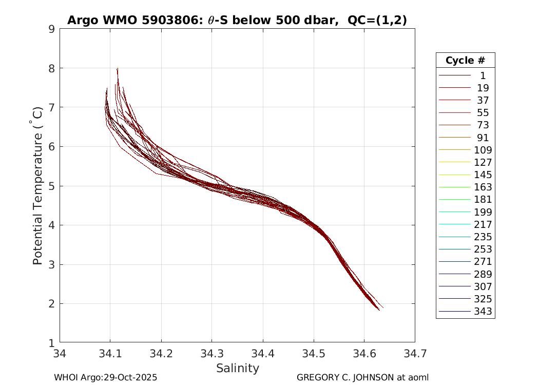 | WMO: #4901495 DAC: aoml PI: GREGORY C. JOHNSON APEX: #5838 SBE41: #5652 DRUCK_2900PSIA: #3220351 Altimeter Comparison (IFREMER) EuroArgo Link | ![]() |