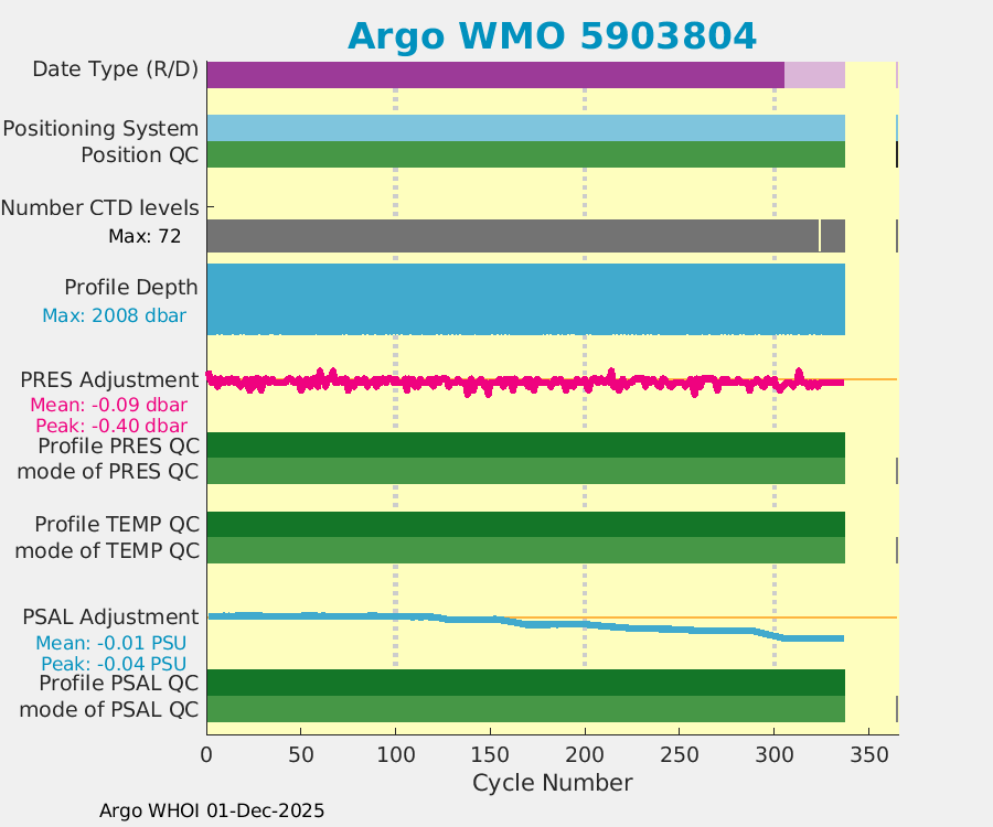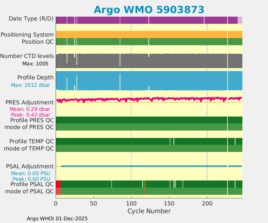 | WMO: #5903841 DAC: aoml PI: GREGORY C. JOHNSON NAVIS_A: #130 SBE41CP: #4135 DRUCK_2900PSIA: #Unknown Altimeter Comparison (IFREMER) EuroArgo Link | n/a | n/a | ![]() |