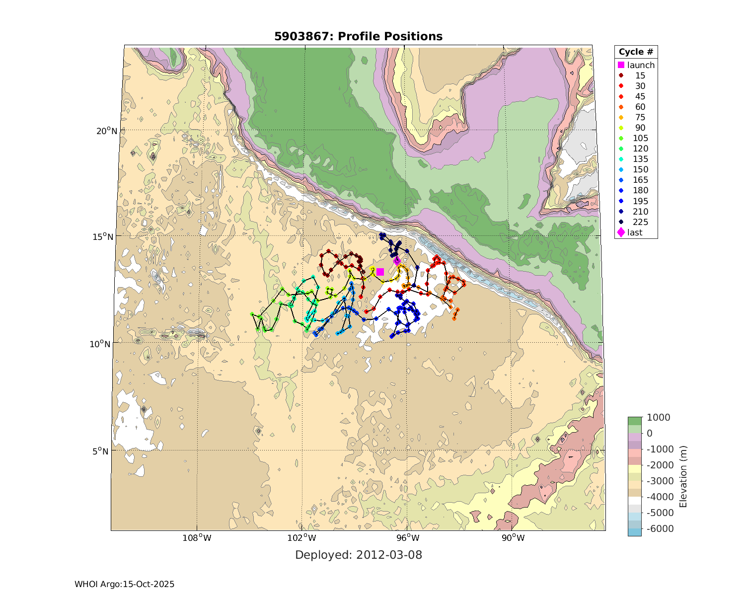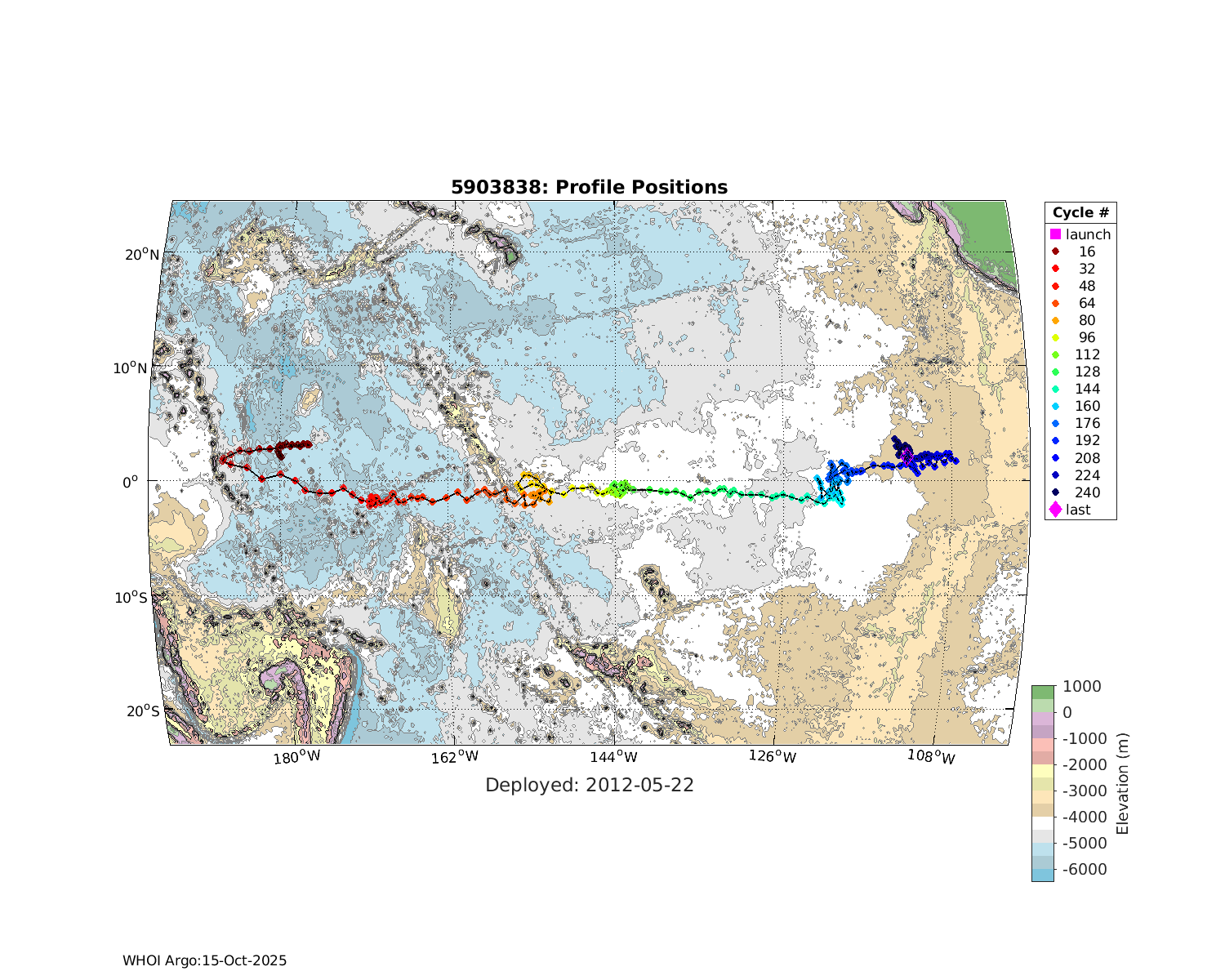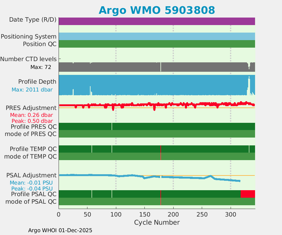 | WMO: #5903808 DAC: aoml PI: GREGORY C. JOHNSON APEX: #5825 SBE41: #5645 DRUCK_2900PSIA: #3218460 Altimeter Comparison (IFREMER) EuroArgo Link | ![]() |