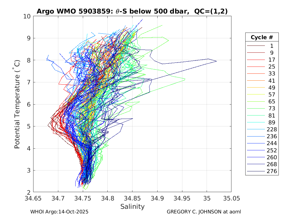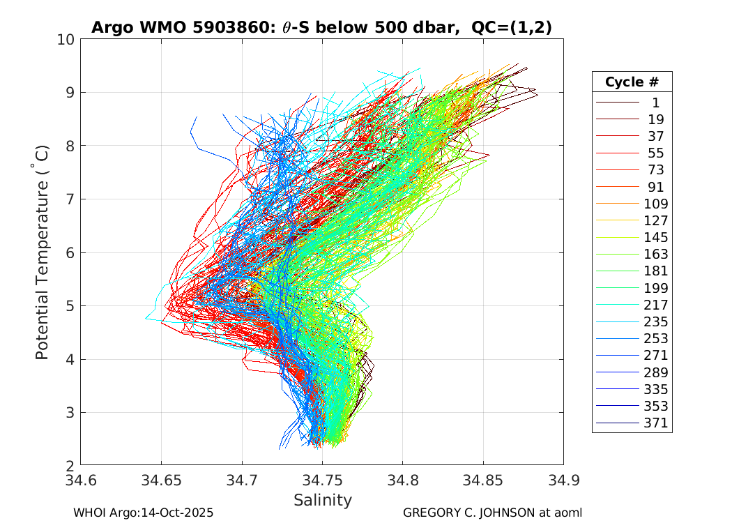 | WMO: #5903860 DAC: aoml PI: GREGORY C. JOHNSON APEX: #5321 SBE41: #5168 DRUCK_2900PSIA: #3152582 Altimeter Comparison (IFREMER) EuroArgo Link | ![]() |