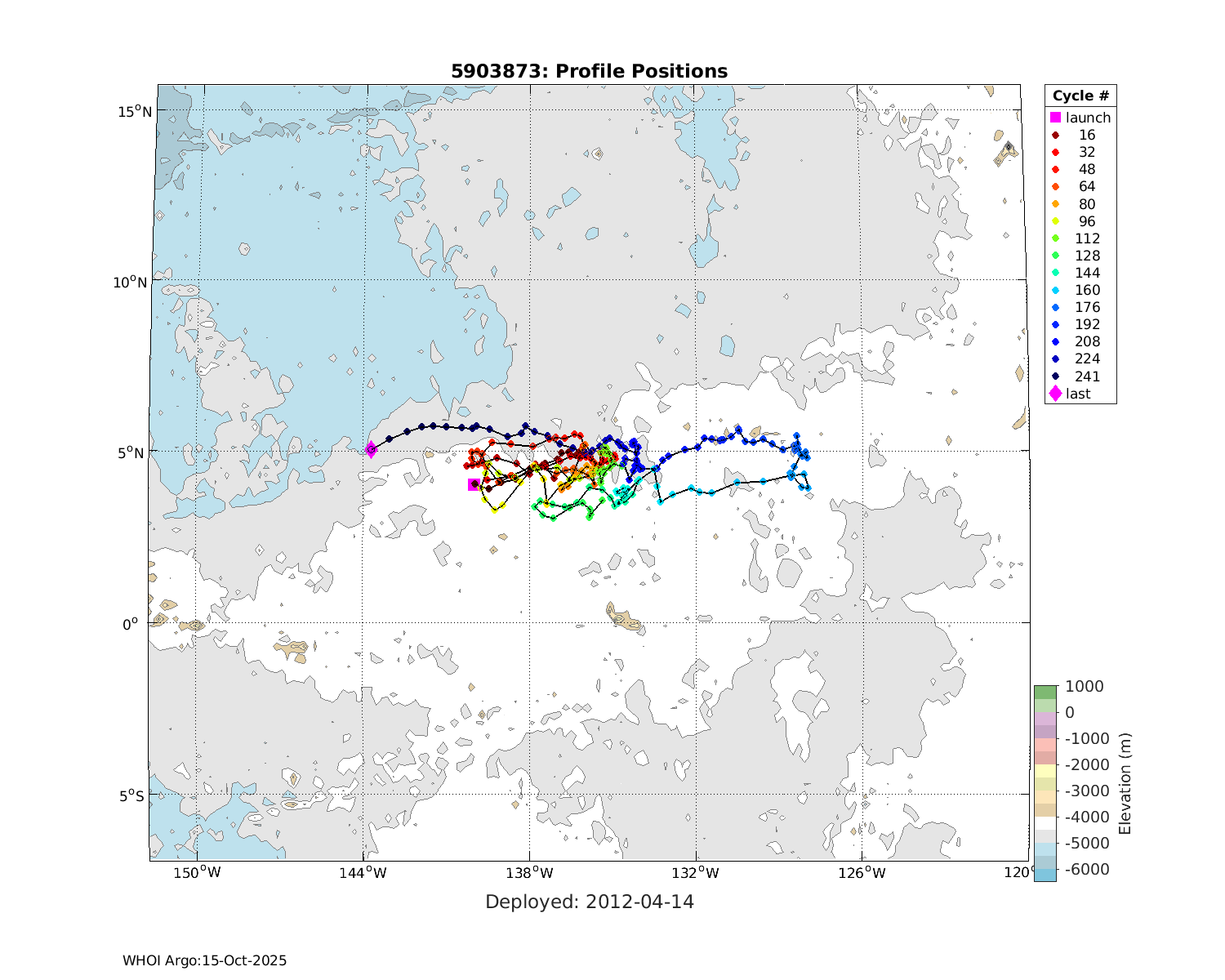 | WMO: #4901444 DAC: aoml PI: GREGORY C. JOHNSON APEX: #5827 SBE41: #5638 DRUCK_2900PSIA: #3260902 Altimeter Comparison (IFREMER) EuroArgo Link | ![]() |