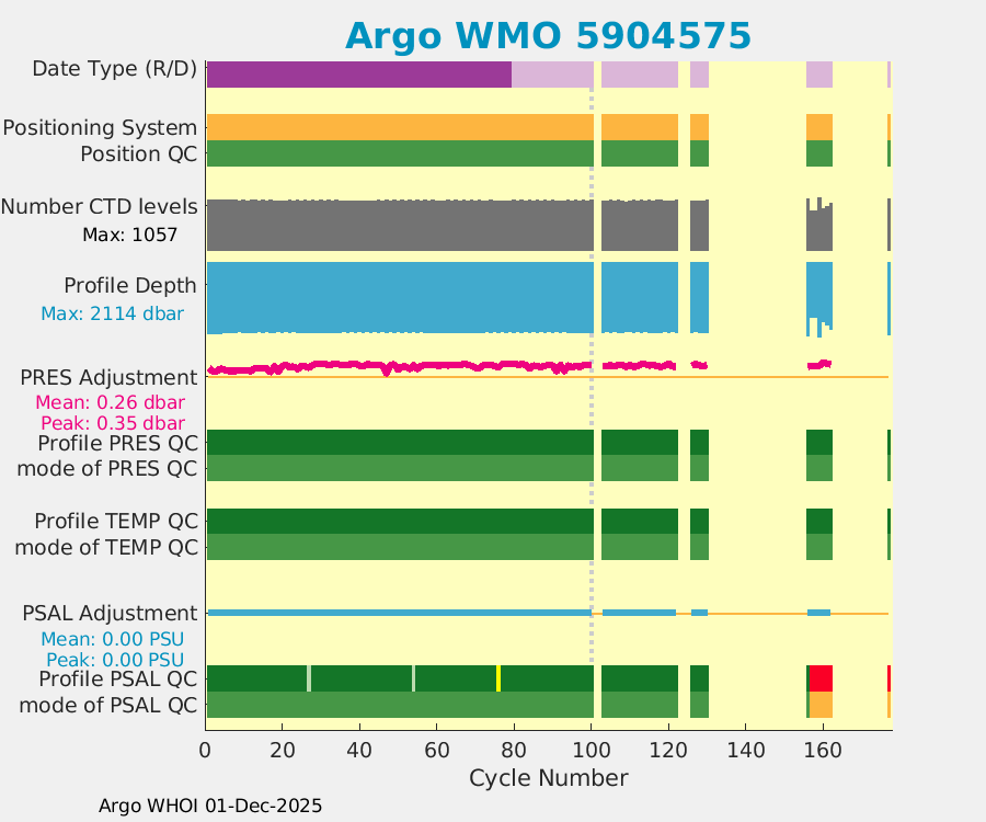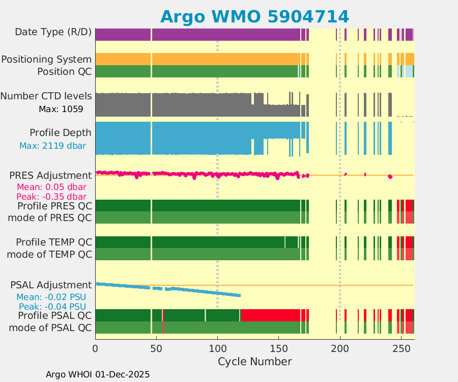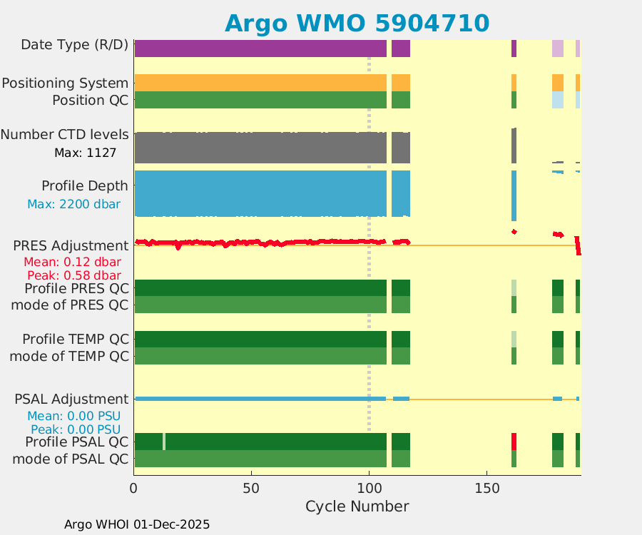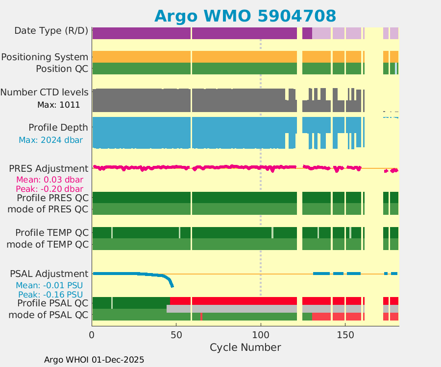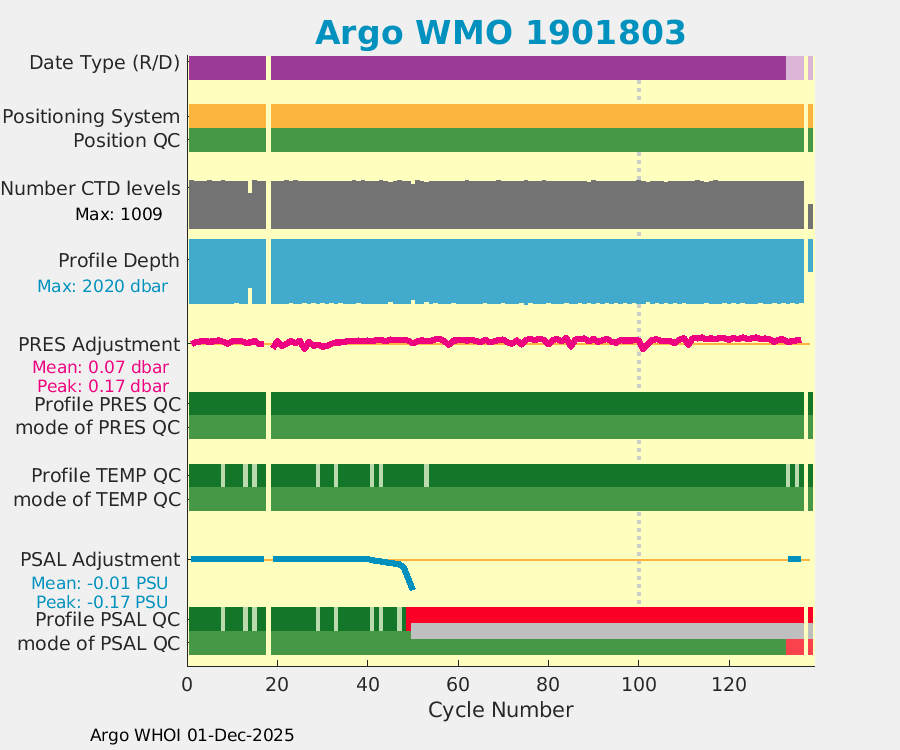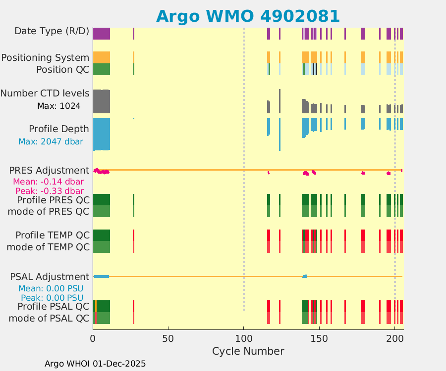 | WMO: #4902085 DAC: aoml PI: GREGORY C. JOHNSON NAVIS_A: #491 SBE41CP: #7025 DRUCK_2900PSIA: #4219024 Altimeter Comparison (IFREMER) EuroArgo Link | ![]() |