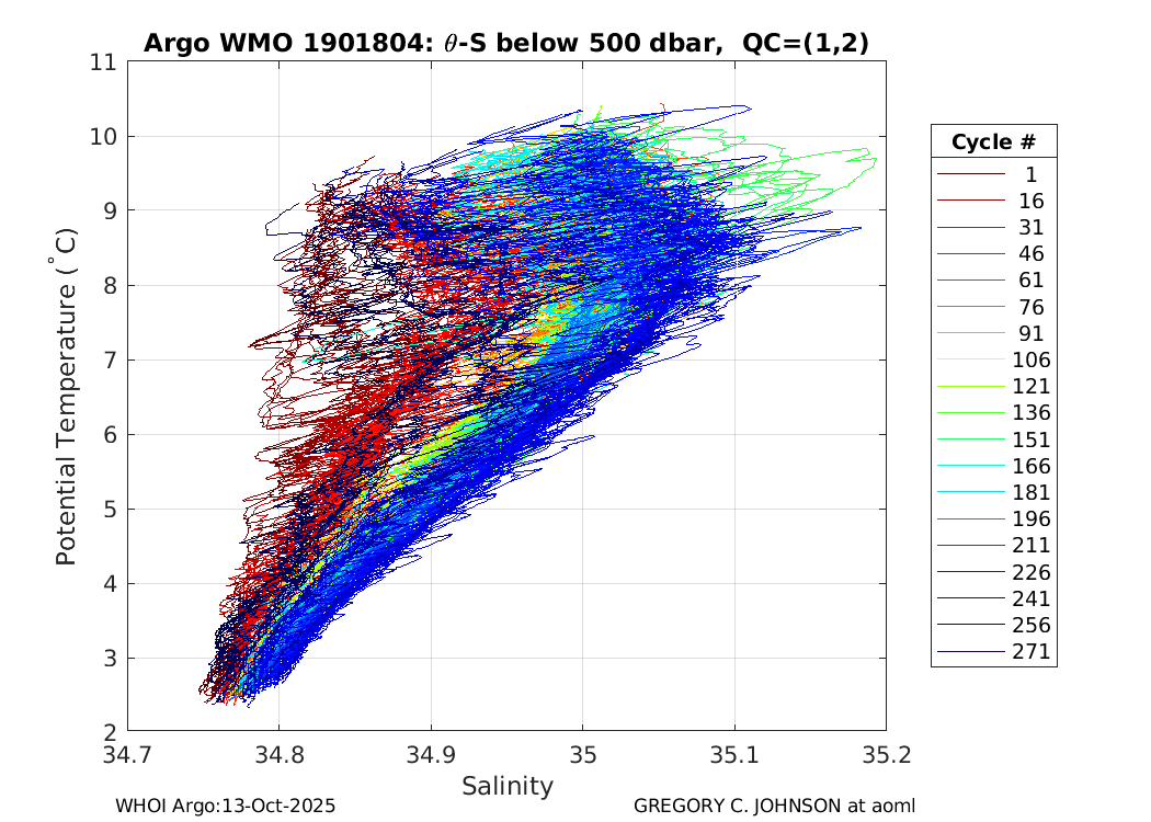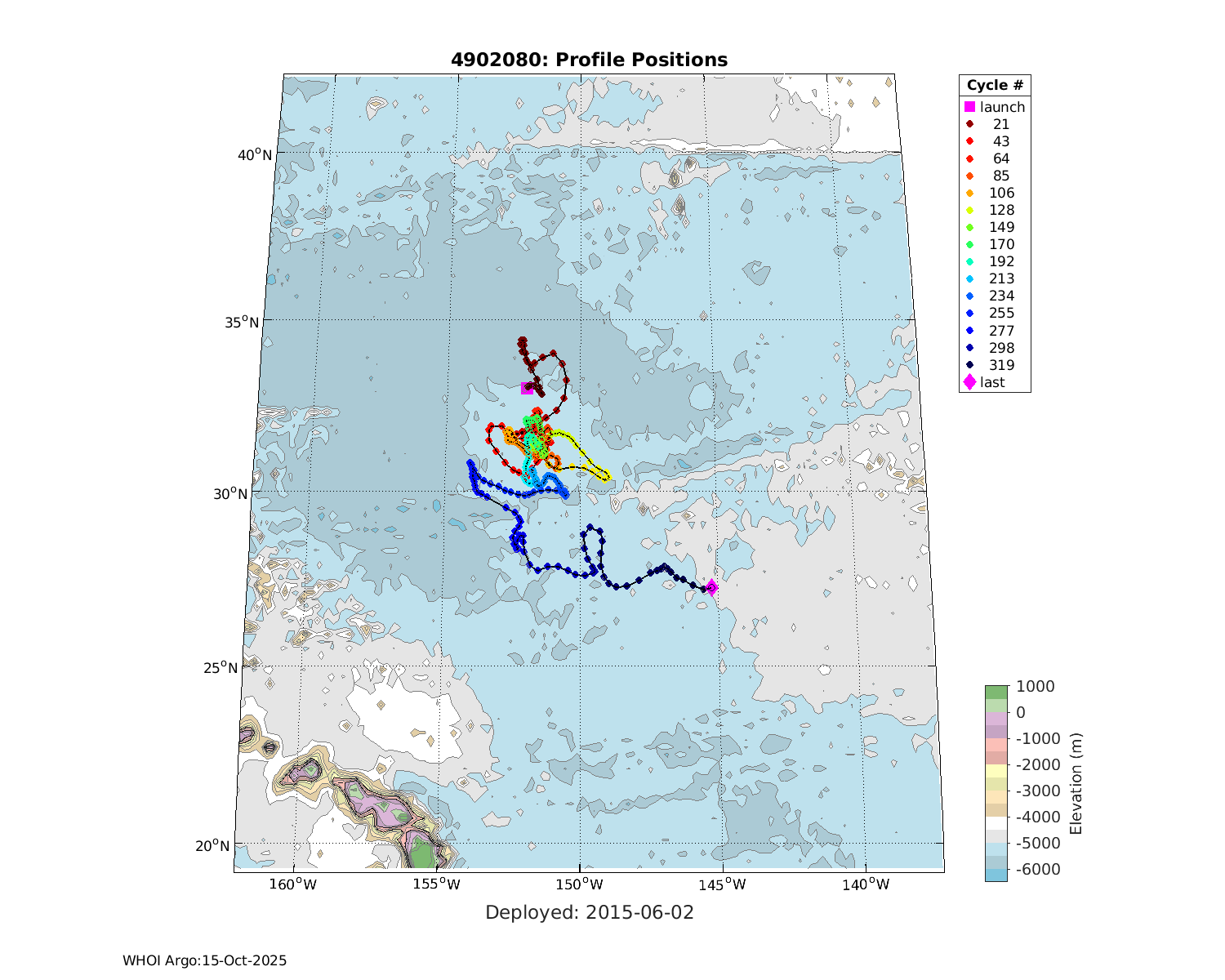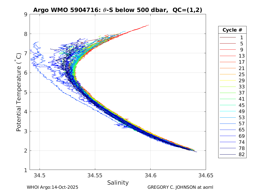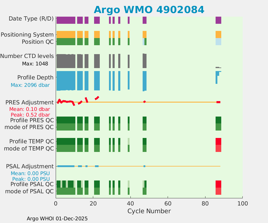| WMO: #4902084 DAC: aoml PI: GREGORY C. JOHNSON NAVIS_A: #467 SBE41CP: #6292 DRUCK_2900PSIA: #4108024 Altimeter Comparison (IFREMER) EuroArgo Link | ![]() |