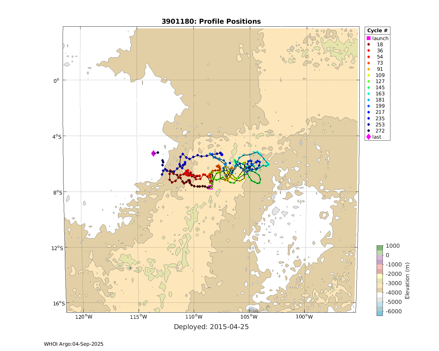 | WMO: #3901180 DAC: aoml PI: GREGORY C. JOHNSON NAVIS_A: #269 SBE41CP: #5246 DRUCK_2900PSIA: #3633601 Altimeter Comparison (IFREMER) EuroArgo Link | ![]() |