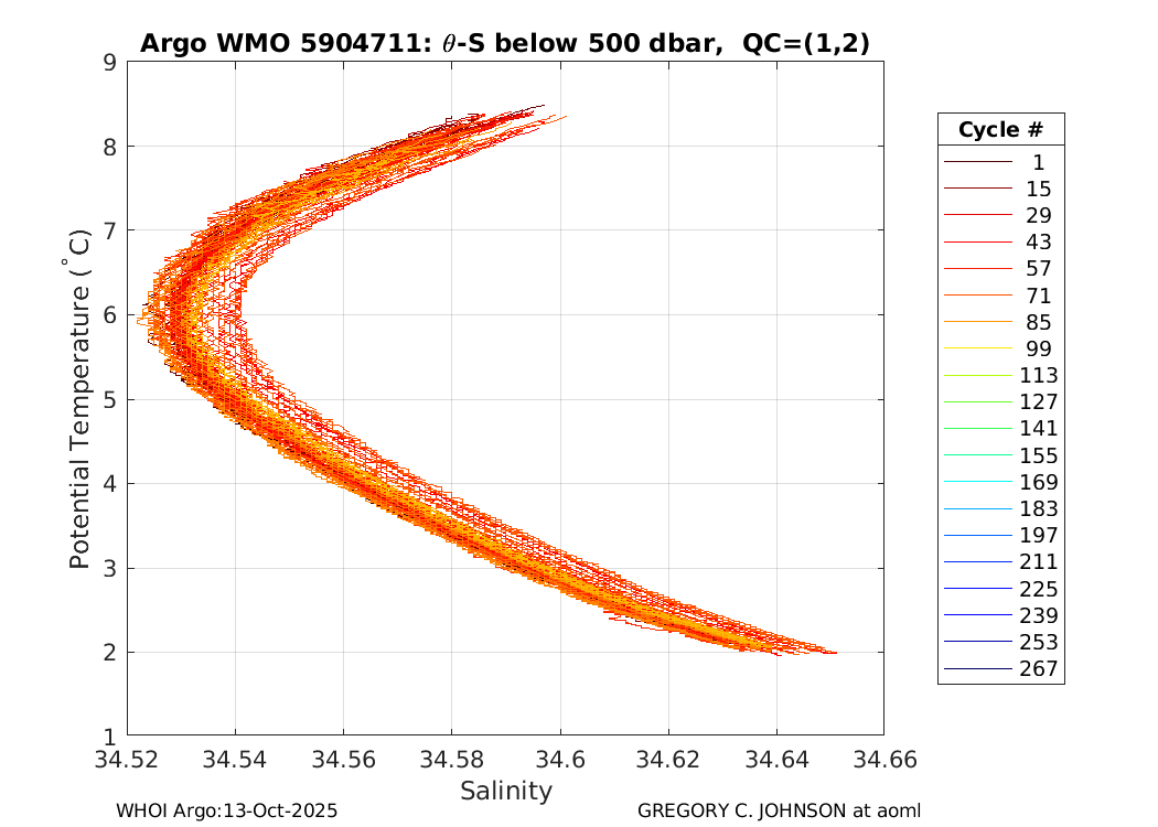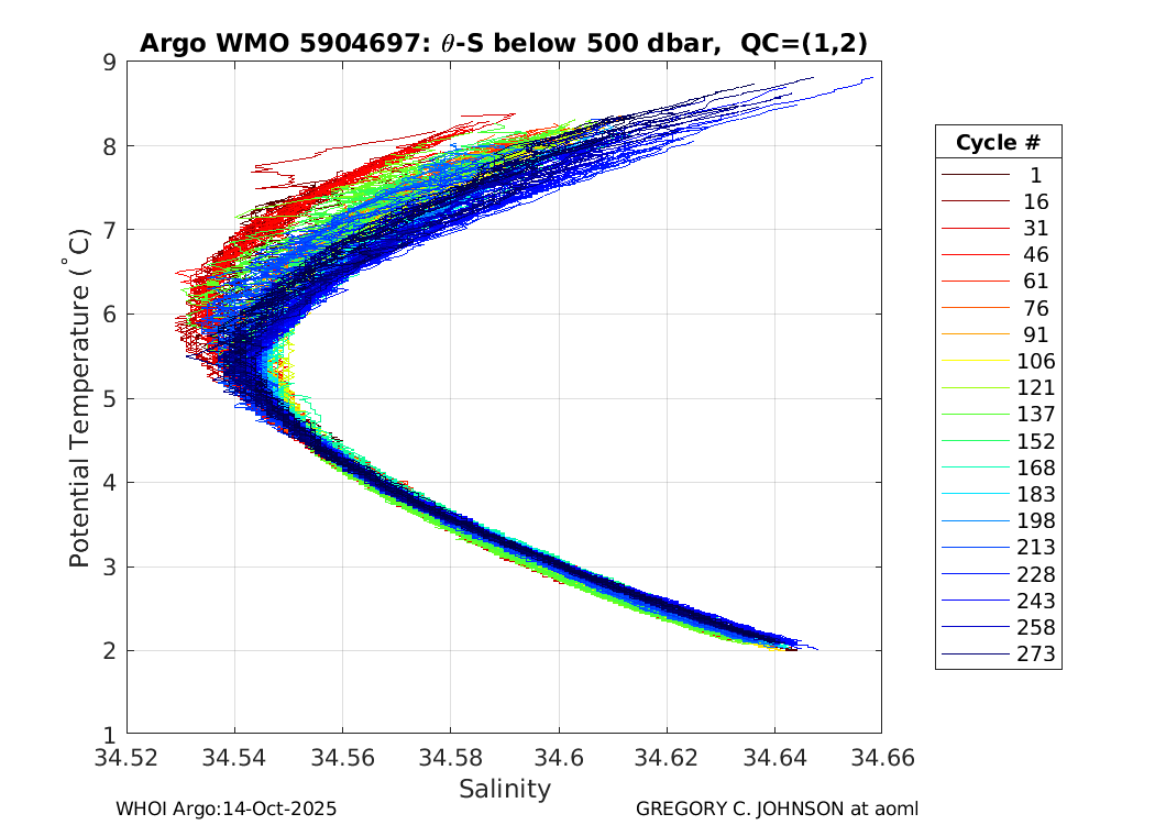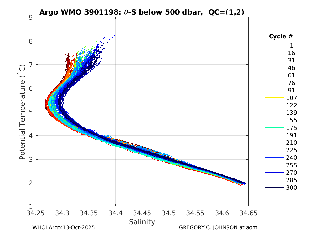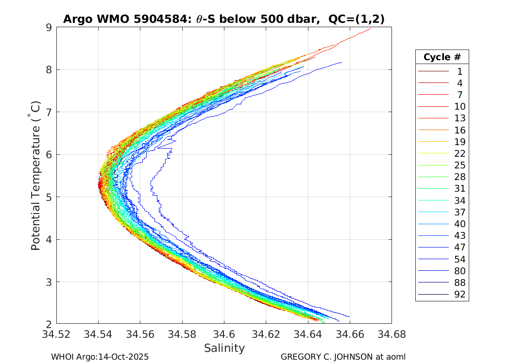 | WMO: #5904708 DAC: aoml PI: GREGORY C. JOHNSON NAVIS_A: #475 SBE41CP: #6301 DRUCK_2900PSIA: #4113767 Altimeter Comparison (IFREMER) EuroArgo Link | ![]() |