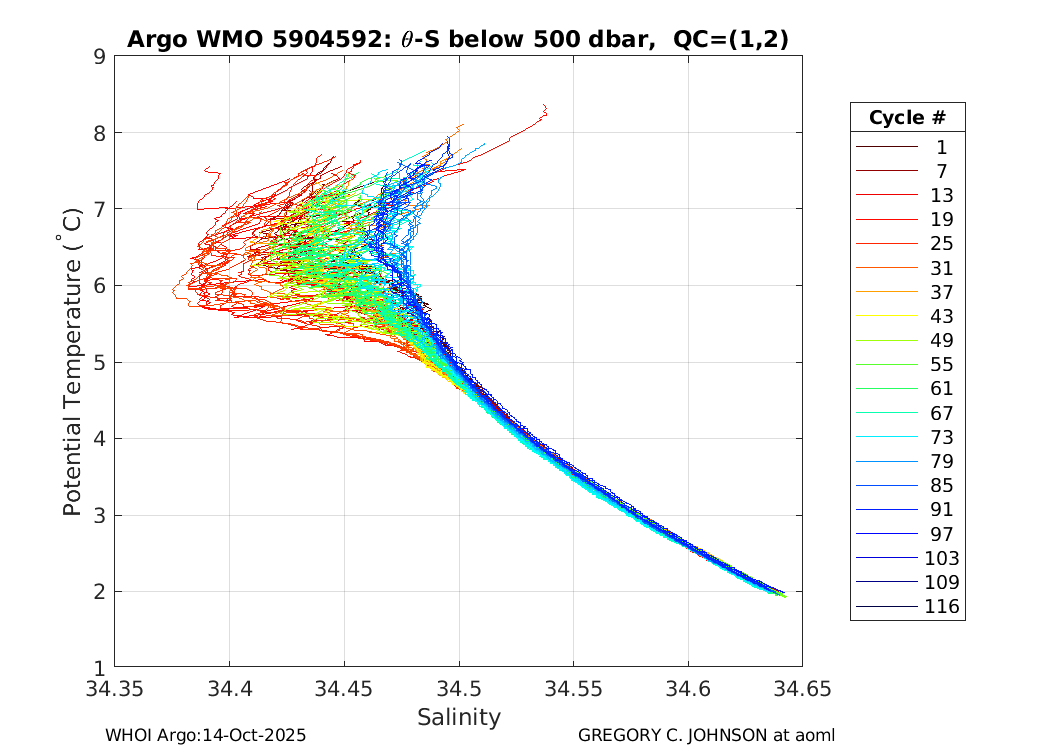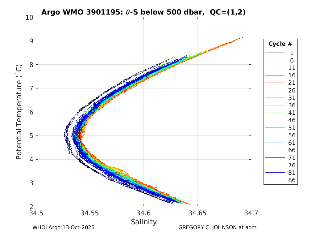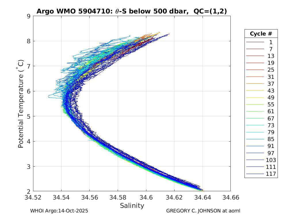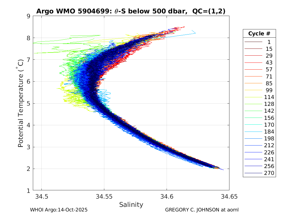 | WMO: #5904708 DAC: aoml PI: GREGORY C. JOHNSON NAVIS_A: #475 SBE41CP: #6301 DRUCK_2900PSIA: #4113767 Altimeter Comparison (IFREMER) EuroArgo Link | ![]() |