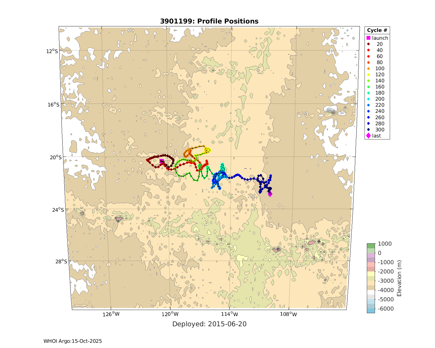| WMO: #3901190 DAC: aoml PI: GREGORY C. JOHNSON NAVIS_A: #425 SBE41CP: #6156 DRUCK_2900PSIA: #4148169 Altimeter Comparison (IFREMER) EuroArgo Link | ![]() |