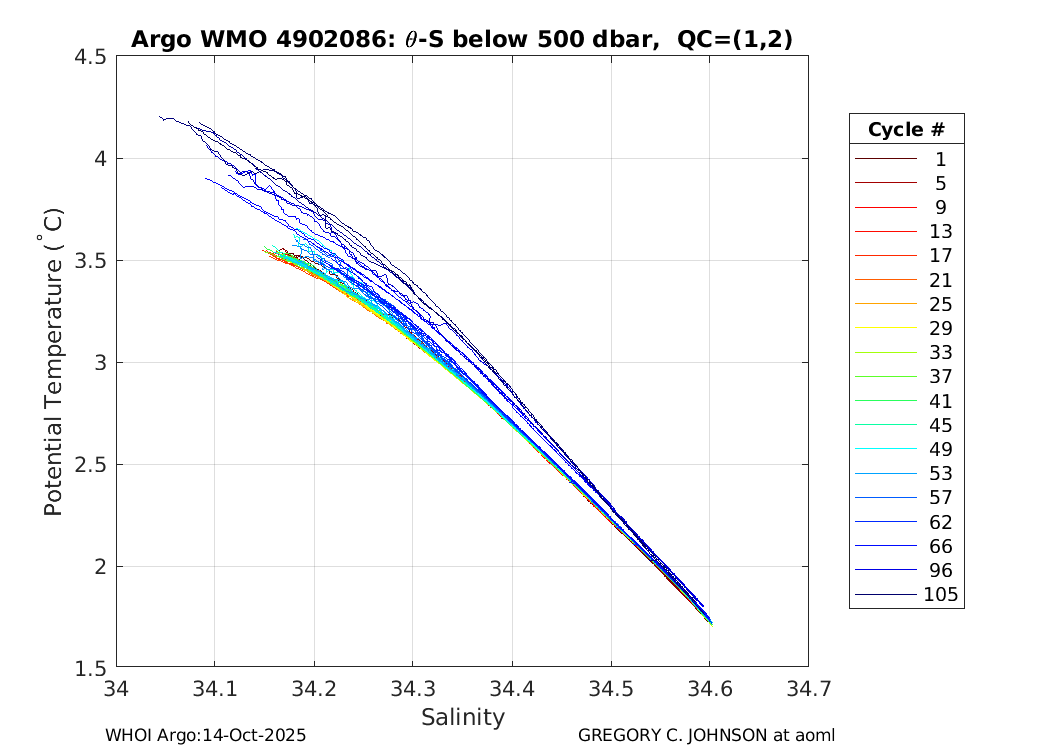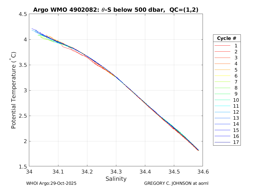 | WMO: #4902086 DAC: aoml PI: GREGORY C. JOHNSON NAVIS_A: #490 SBE41CP: #7026 DRUCK_2900PSIA: #4218728 Altimeter Comparison (IFREMER) EuroArgo Link | ![]() |