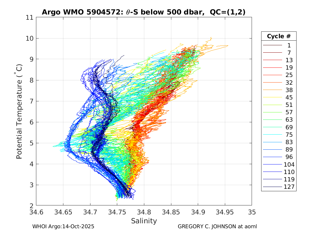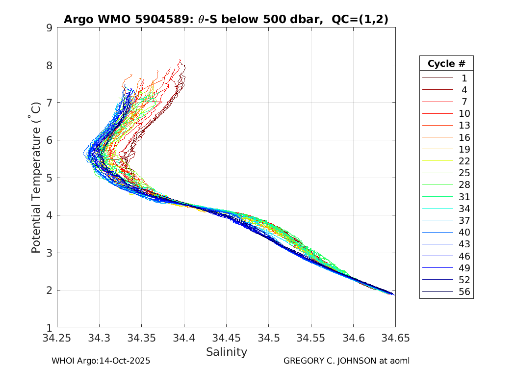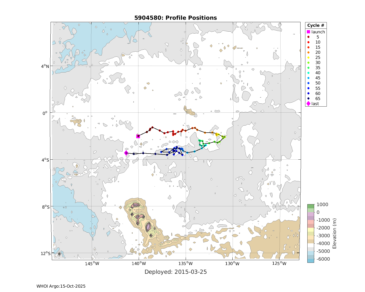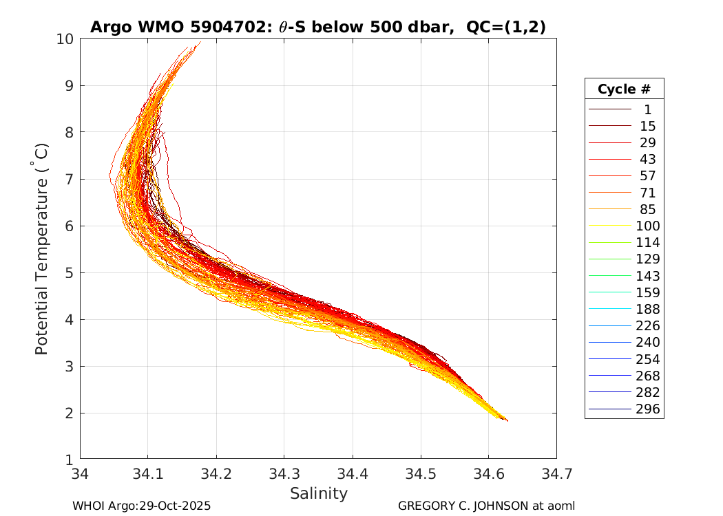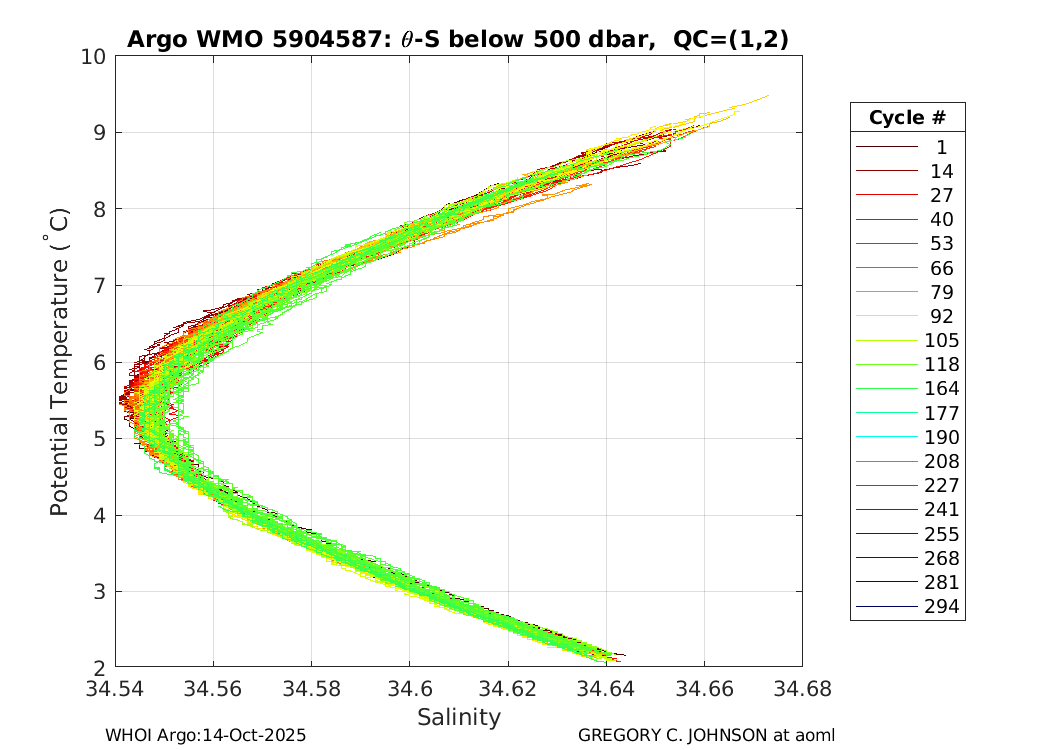 | WMO: #5904590 DAC: aoml PI: GREGORY C. JOHNSON NAVIS_A: #481 SBE41CP: #6311 DRUCK_2900PSIA: #4267030 Altimeter Comparison (IFREMER) EuroArgo Link | ![]() |