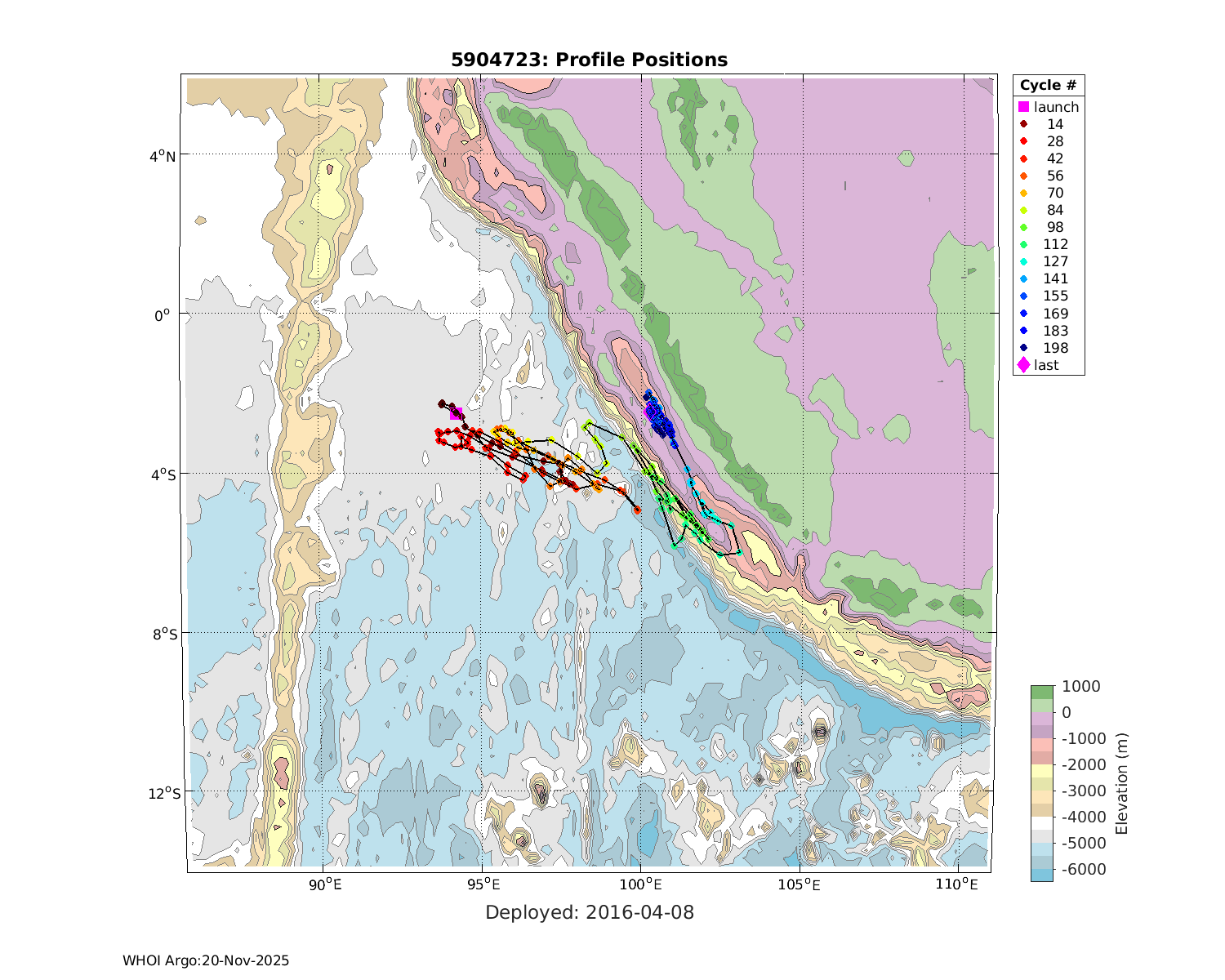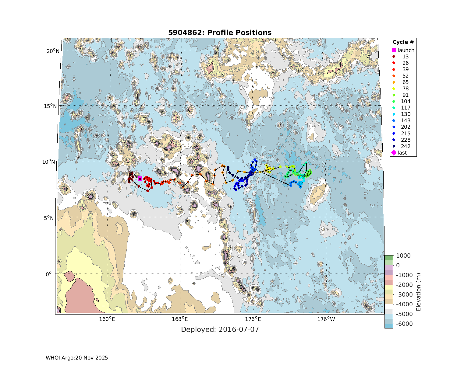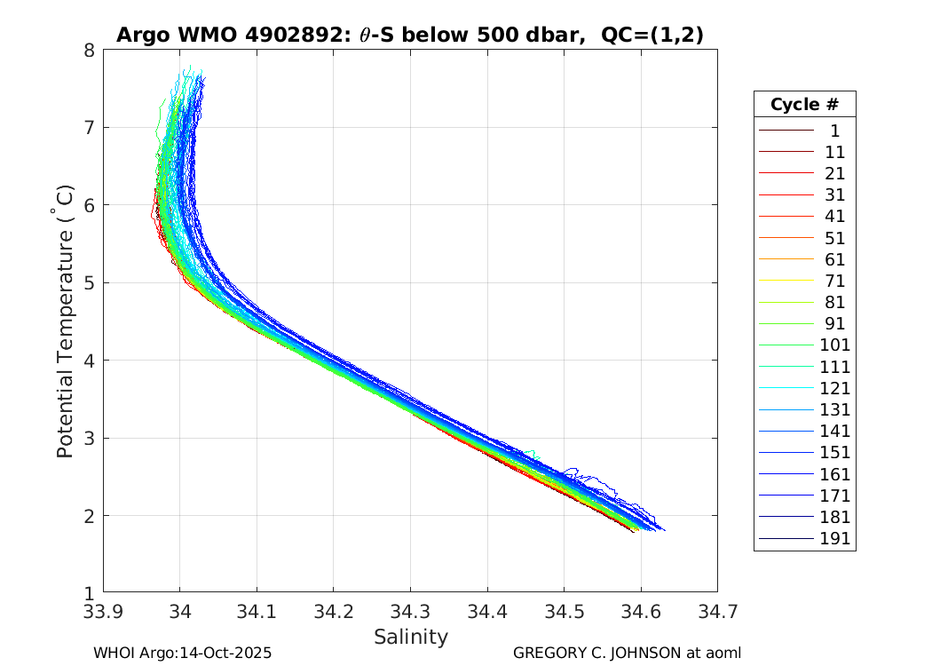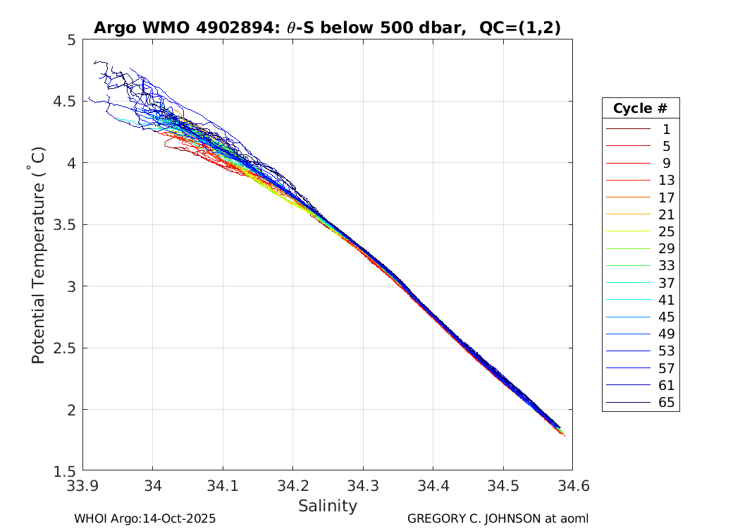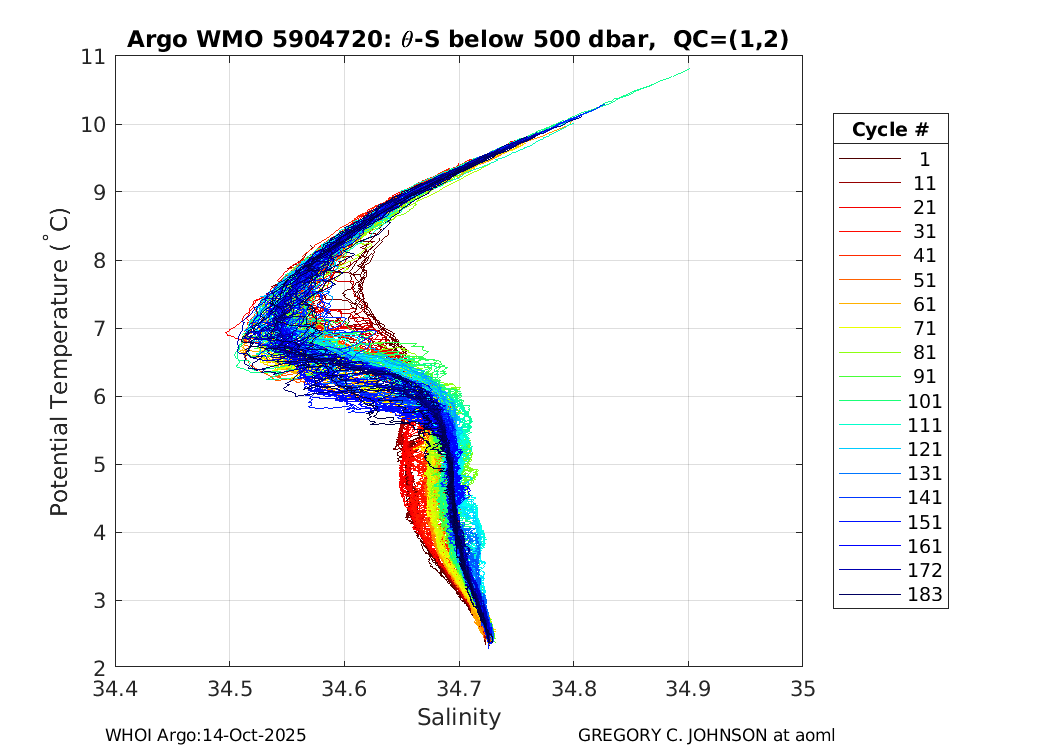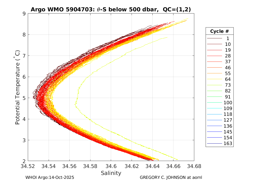| WMO: #1901805 DAC: aoml PI: GREGORY C. JOHNSON NAVIS_A: #680 SBE41CP: #08181 KISTLER_2900PSIA: #4730973 Altimeter Comparison (IFREMER) EuroArgo Link | ![]() |