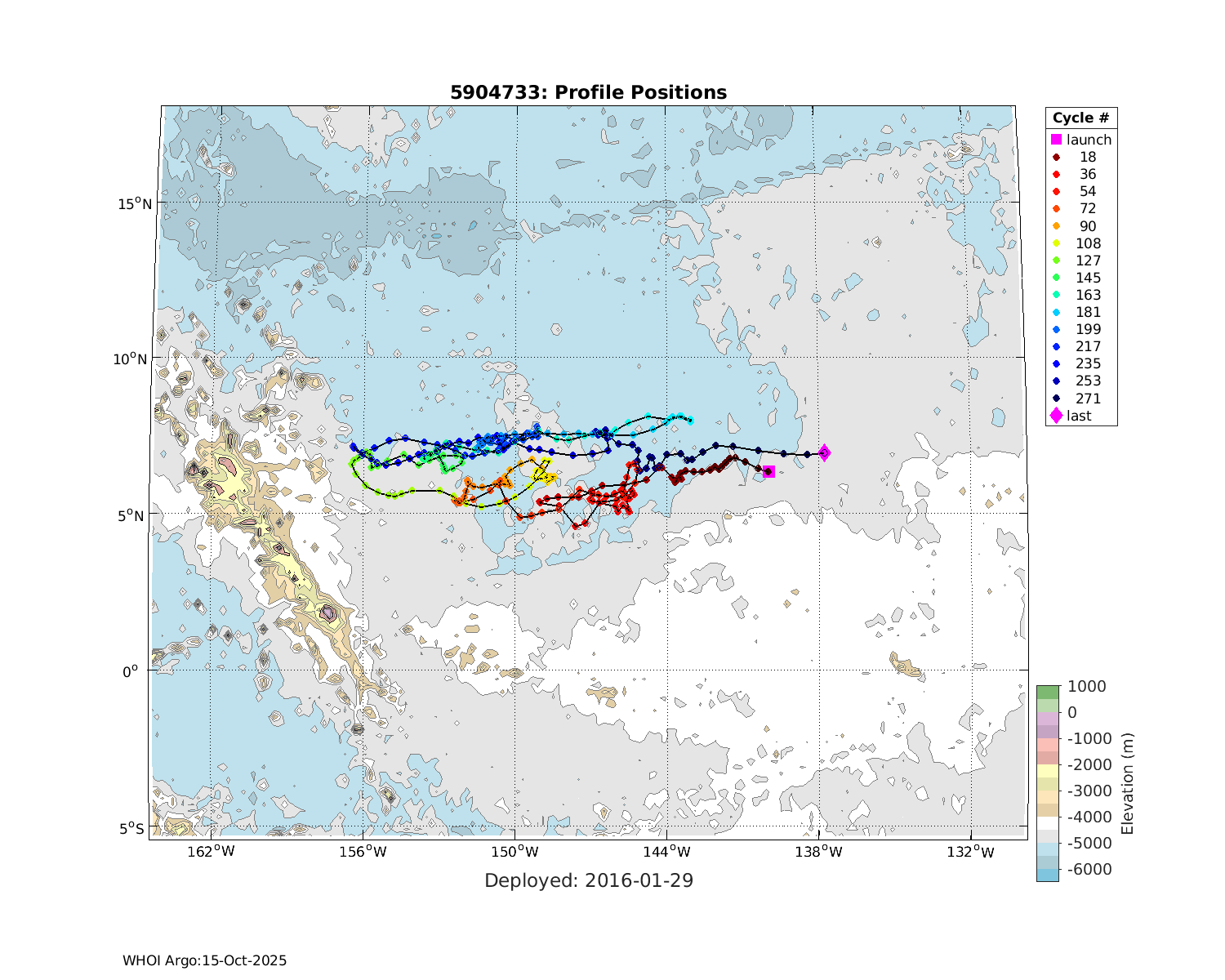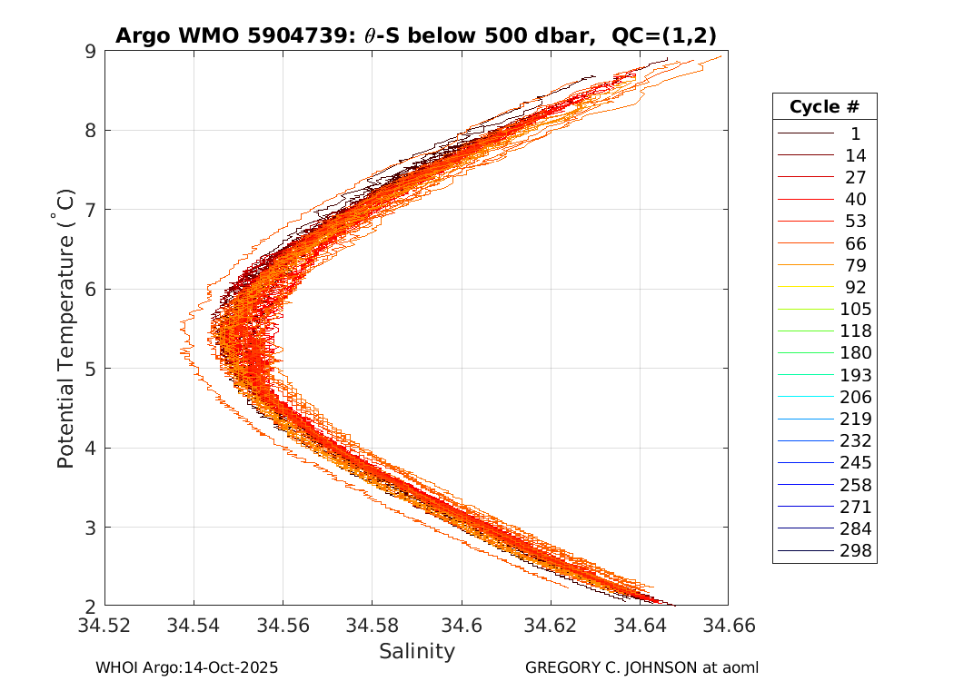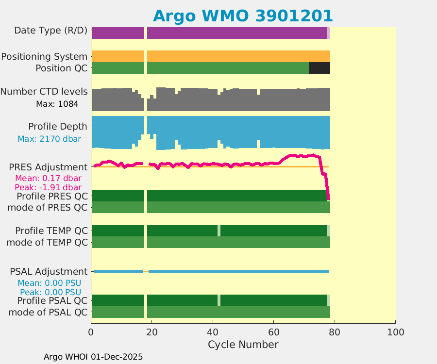| WMO: #3901200 DAC: aoml PI: GREGORY C. JOHNSON NAVIS_A: #500 SBE41CP: #7078 DRUCK_2900PSIA: #4149138 Altimeter Comparison (IFREMER) EuroArgo Link | ![]() |