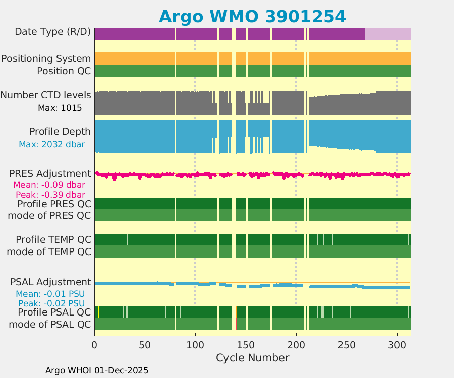 | WMO: #3901254 DAC: aoml PI: GREGORY C. JOHNSON NAVIS_A: #560 SBE41CP: #6234 DRUCK_2900PSIA: #4224996 Altimeter Comparison (IFREMER) EuroArgo Link | ![]() |