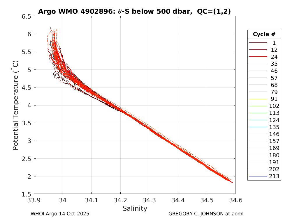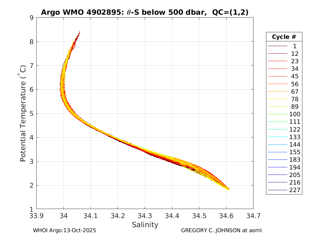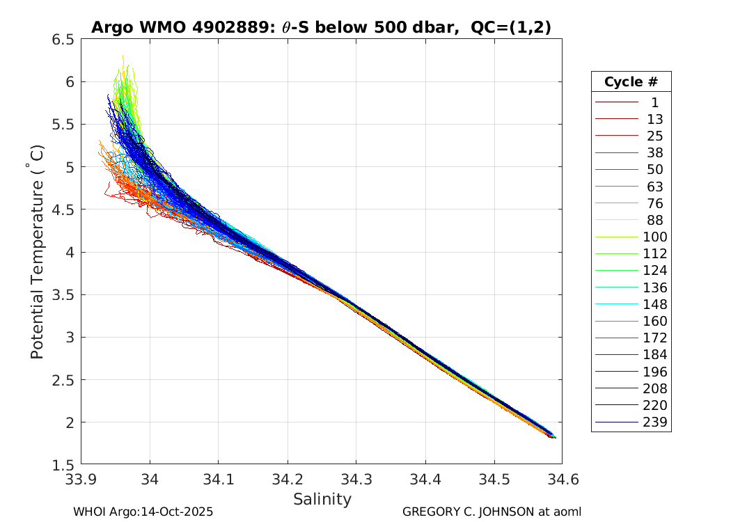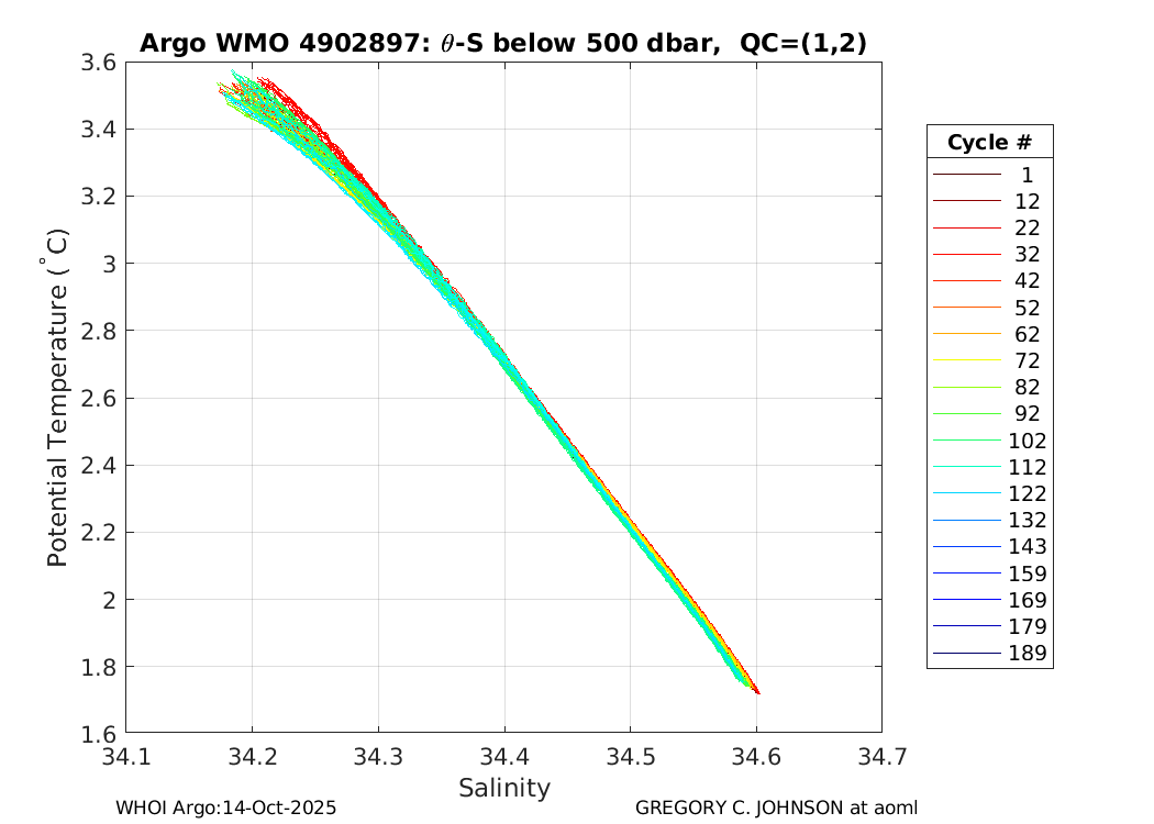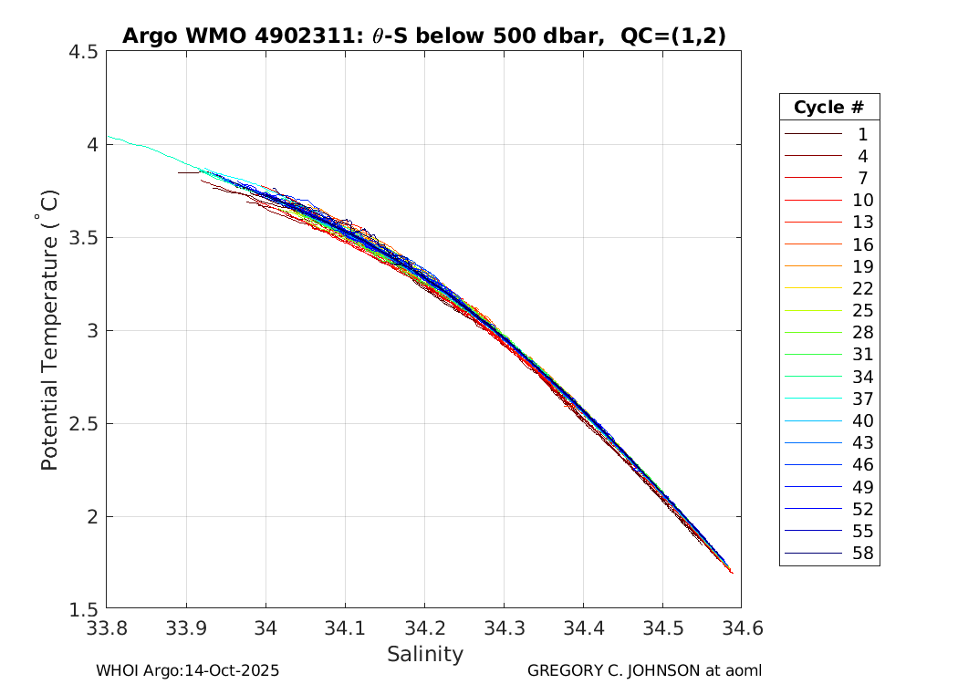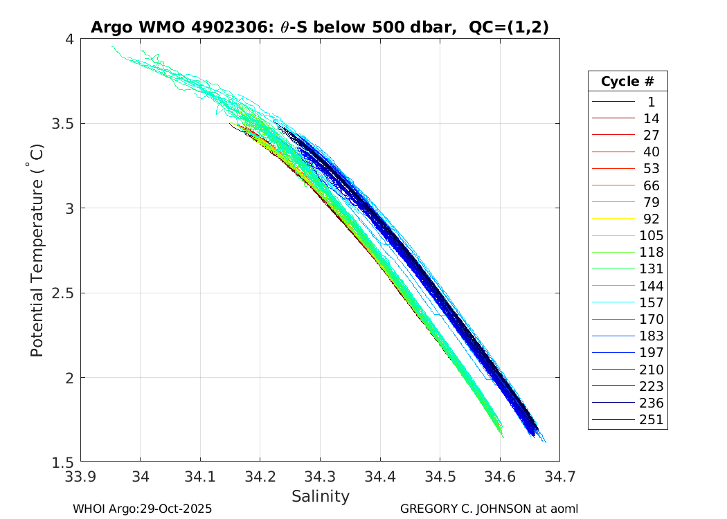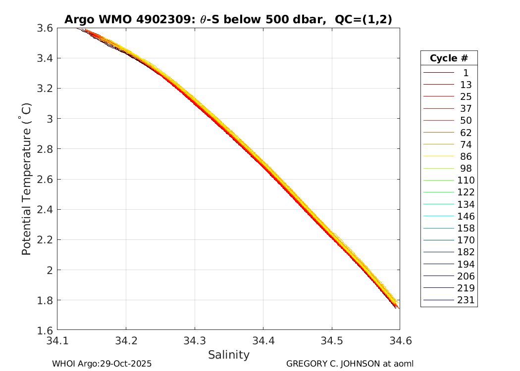 | WMO: #4902301 DAC: aoml PI: GREGORY C. JOHNSON NAVIS_A: #542 SBE41CP: #7231 DRUCK_2900PSIA: #4218729 Altimeter Comparison (IFREMER) EuroArgo Link | ![]() |